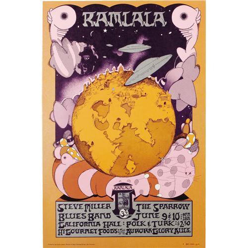 <B>Ramlala Concert Poster Group (1967).</B></I> The Ramlala Group produced a few shows at San Francisco's California Hall in the mid 1960s. Here are two prime examples, both in NM condition: a June 9 and 10, 1967 set of shows starring the Steve Miller Blues Band and Sparrow (14 1/2" x 21 5/8"), and one for June 16 - 18 shows featuring Anonymous Artists of America, Mt. Rushmore, and the Mystery Trend (14 1/2" x 20 3/8"). Wild and colorful!<BR><BR><b>Shipping:</b> Flat Material, Large (<a target="_blank" href="http://www.heritageauctions.com/common/shipping.php">view shipping information</a>)