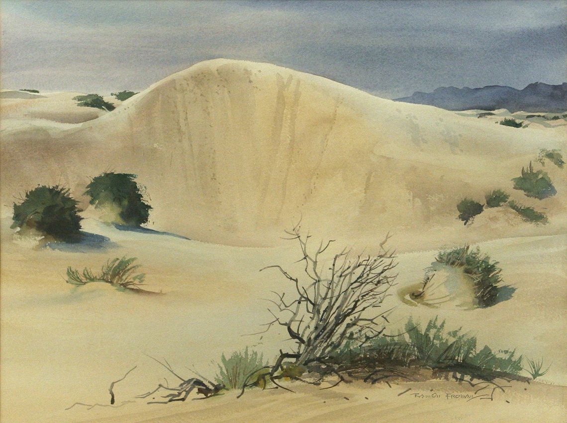 Ramon Froman (1908-1980). White Sands, New Mexico. 21 ½" x 28 ½" watercolor. Signed lower right: RAMON FROMAN. (est. $800-1,200). CONDITION REPORTS: www.auctioninsantafe.com/docs/cr2012.pdf