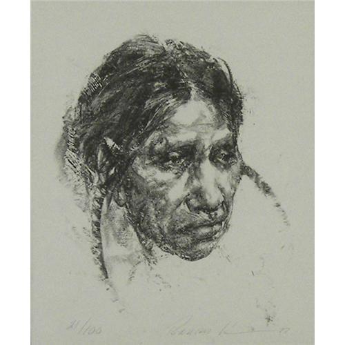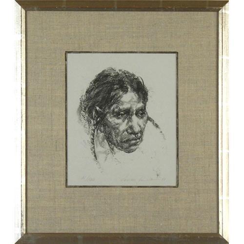 Ramon Kelley (b.1939) Lithograph, Indian Portrait, #21/100, 1977, image size 7" x 6 1/2", pencil signed