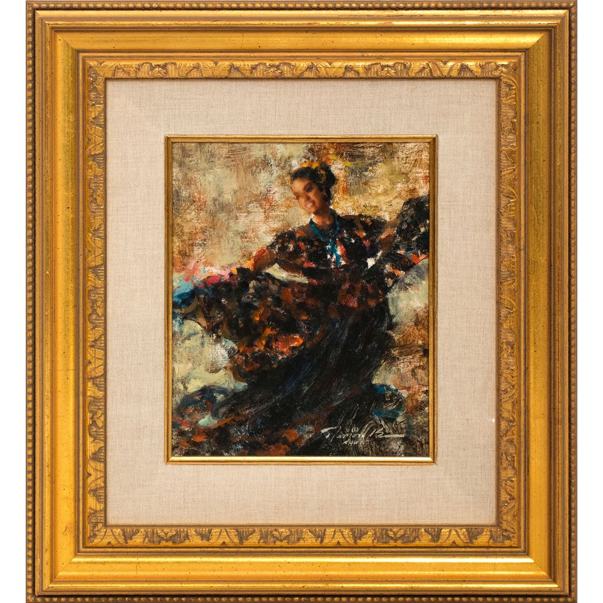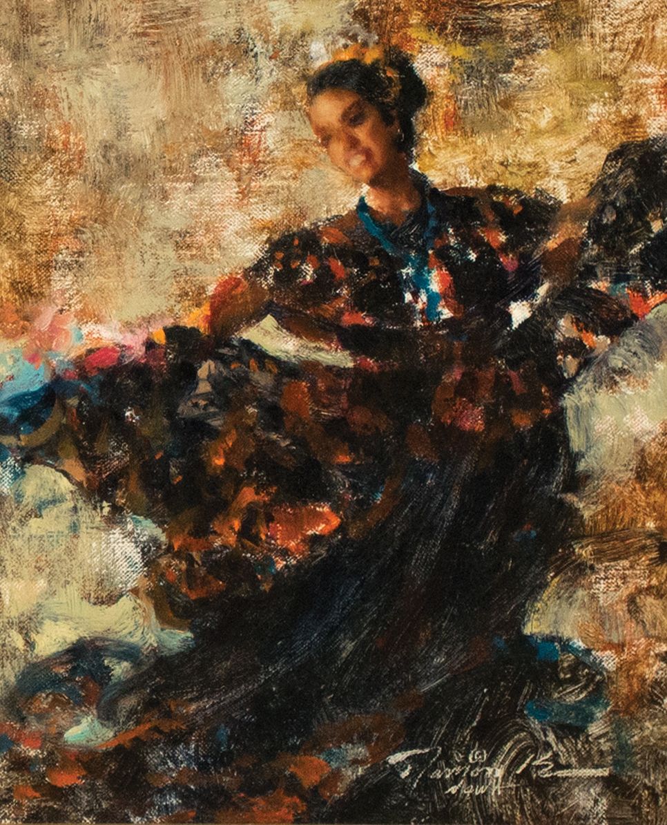 Ramon Kelley (1939 - ). Gypsy Dancer. 10" x 8" oil on canvas. Signed lower right: © Ramon Kelley NAWA. Verso: titled and signed.