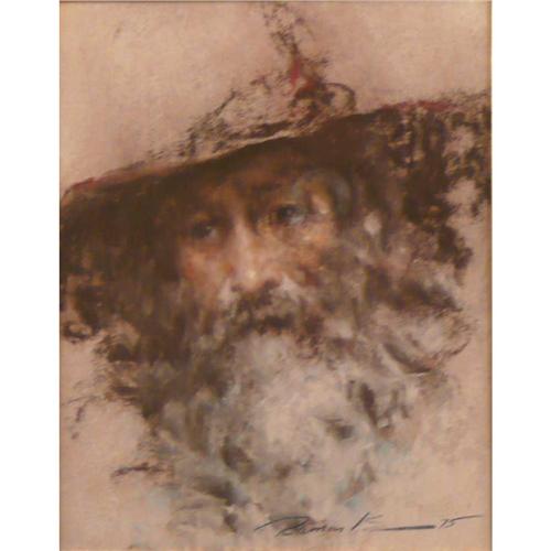 Ramon Kelly, Pastel, Bearded man in hat, 9 1/2" x 7 1/2", Signed lower right '75.