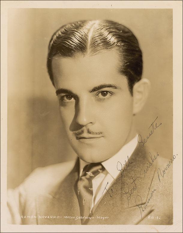 Vintage pearl-finish 8.25 x 10.25 MGM publicity photo, signed and inscribed in fountain pen “To Bill Bessette, Best wishes, Ramon Novarro.” In fine condition, with a couple of small creases, surface impressions, and a tiny spot of soiling along the bottom border.