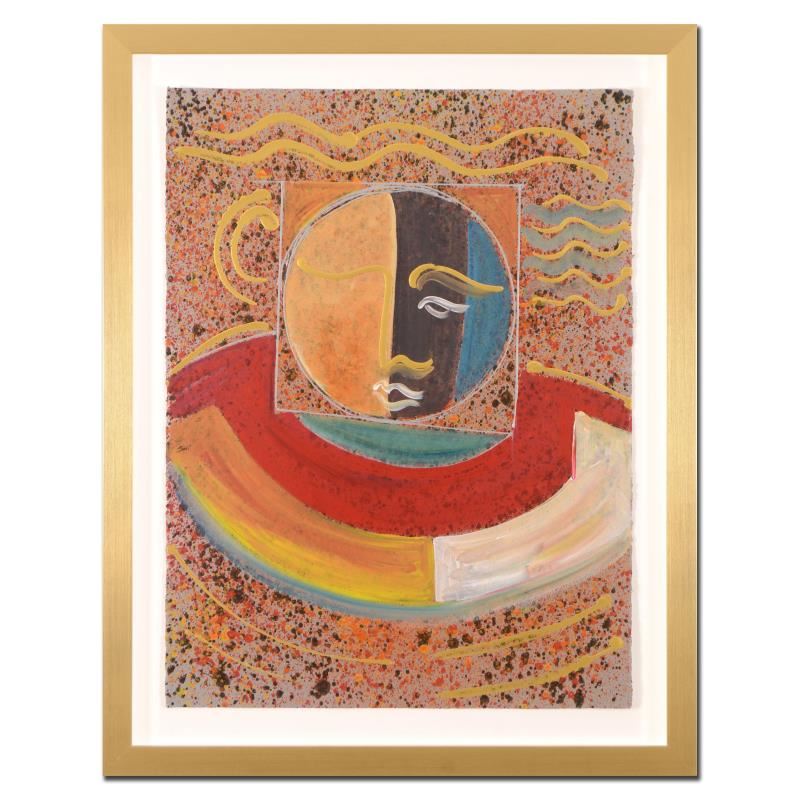 "Ramon" is an original mixed media acrylic painting on deckle-edged paper by Gaylord Soli, hand signed by the artist. This piece is custom framed. Includes Certificate of Authenticity. Measures approx. 28.5" x 36" (with frame); 22" x 30" (image).