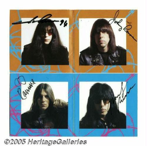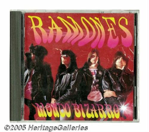 <B>Ramones Autographed CD.</B></I> A new record deal, the return of longtime producer Ed Stasium, and the addition of an enthusiastic new bassist (C. J. Ramone) revitalized the Ramones, making 1992's "Mondo Bizarro" the band's strongest release in years. Here is a copy of the CD signed by Joey, Johnny, C. J., and Marky. <I>With COA from PSA/DNA.</B></I>