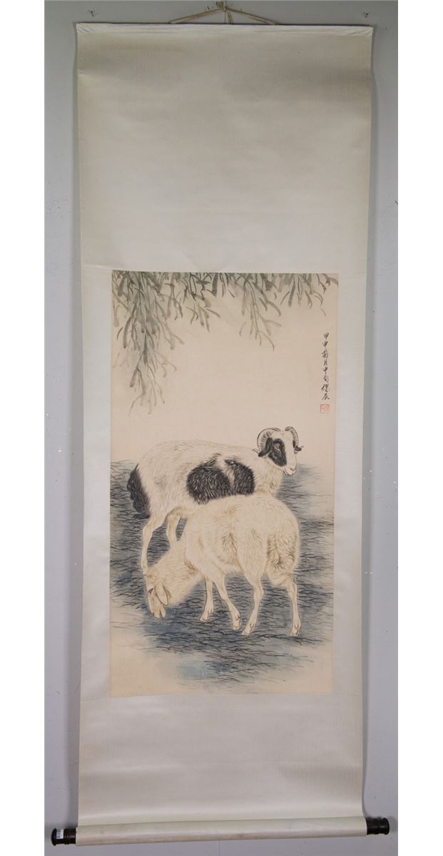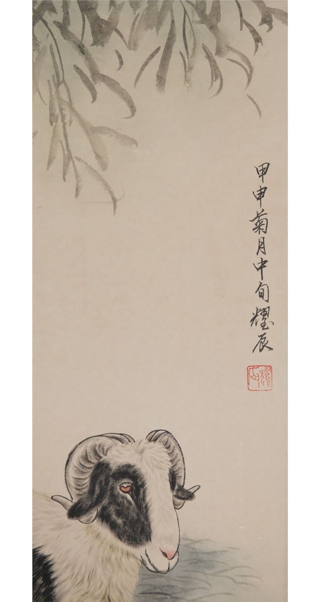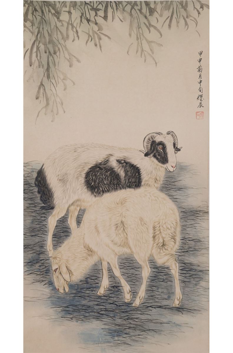 Rams, Chinese ink and watercolour on paper; signed Liu Kui Ling (1885-1967) and inscribed with one artist seal; 64 cm x 45 cm