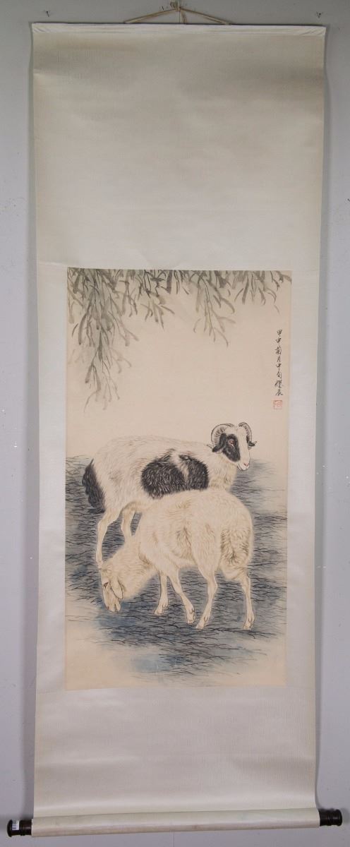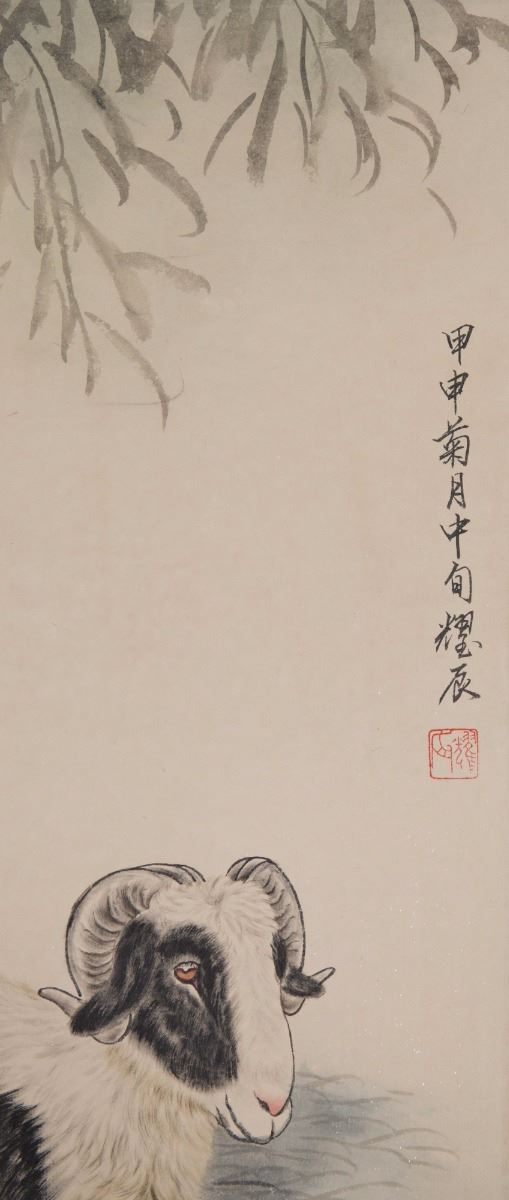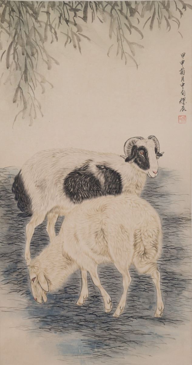 Rams, Chinese ink and watercolour on paper; signed Liu Kui Ling (1885-1967) and inscribed with one artist seal; 64 cm x 45 cm