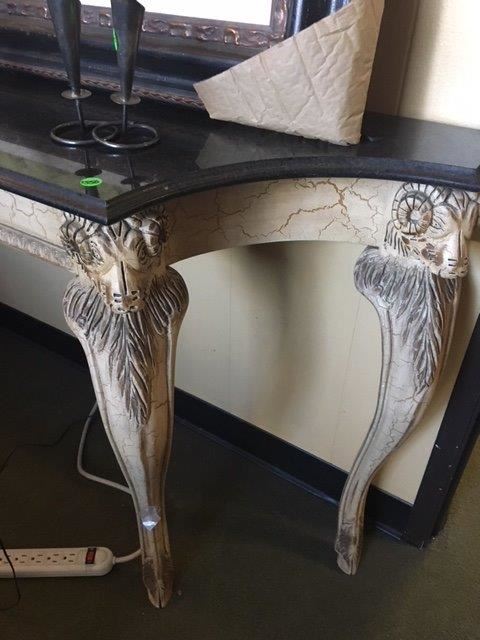 One Rams ( hand-carved ) unique parsons table . Ash w/granite top