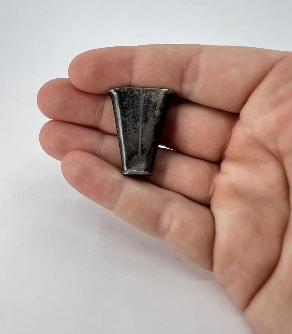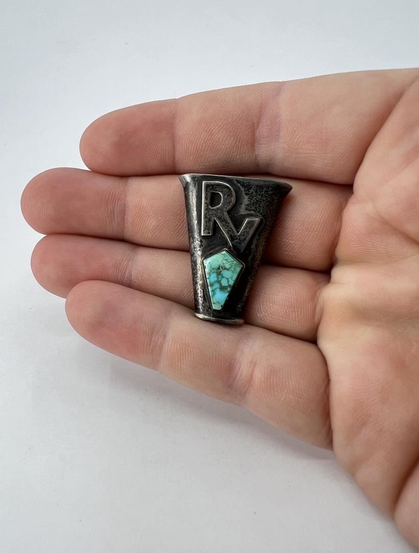 Measures 1 1/4" by 3/4". 6.2 grams. Los Rancheros Visitadores or the "Visiting Ranchers" is a social club in the United States. The group meets on ranch land in Santa Barbara and embarks northward on a 60-mile journey across the countryside after receiving a blessing at the Santa Ynez Mission. It attracts over 700 riders on its annual trek. It was founded by the banker and United Airlines co-founder Jack Mitchell and friends, and Mitchell was the first president and led the group for 25 years. Members and guests have included Edward Borein, Thomas M. Storke, Clark Gable, Ronald Reagan, and Walt Disney. In 1938, Los Rancheros acquired the Covarrubias Adobe from historian and author John Southworth for $15,000, and they undertook reconstruction and strengthening of the house in 1940. Norman Sandfield Collection Inv: B1586
