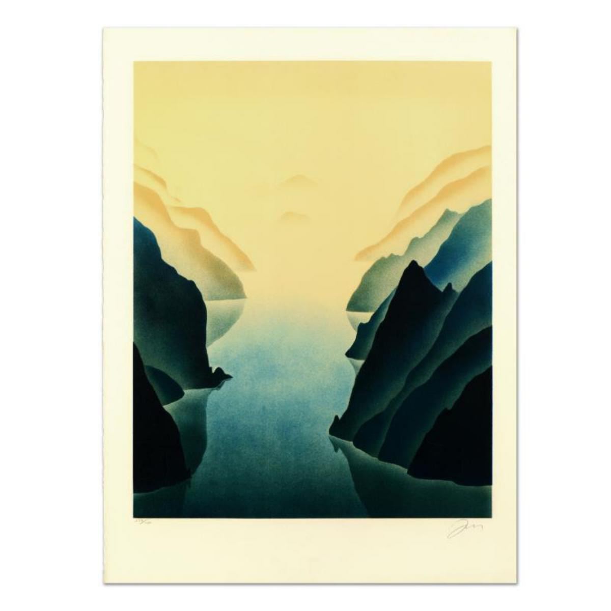 "Gorge" is a limited edition lithograph on paper by Rand, numbered and hand signed by the artist. Measures approx. 21" x 30" (border). 18.5" x 25" (image). Reference #: 219501.