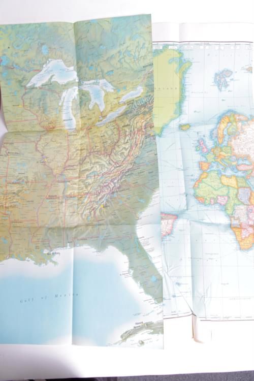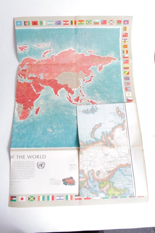 Offered here is this Rand Mcnally United Nations Map of the World and Portfolio. It contains:Atlas of the WorldAmericans Who Believe in the UN Pamphlet Almanac of World FactsUS Map3 World Maps