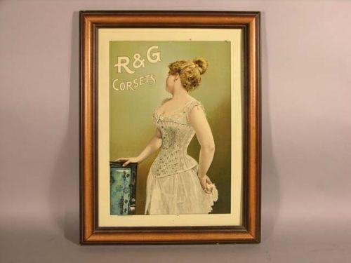 R&G Corsets tin sign, Kaufman & Strauss Co., NY, 11.5" x 16" ex. cond.