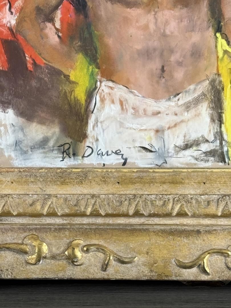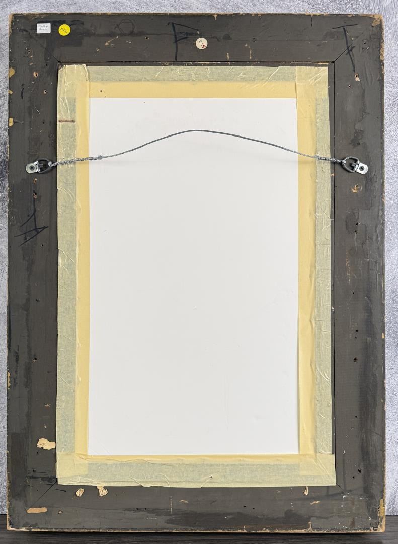 Title is Weigh In. 15 1/2" by 24" unframed. 24" by 33" framed. Pastel on Paper. From the Private Collection of James H and Pauline Harken. Inventory #142 Randall Vernon Davey (1887 - 1964) was active/lived in New Mexico, New York, California, New Jersey. Randall Davey is known for Genre-horse, landscape, portrait, nude. Born in East Orange, New Jersey, Randall Davey became an influential figure in early 20th century art including the art community of Santa Fe. He became a painter of portraits, still lifes, nude figures, and horse-racing genre, especially scenes of polo matches. Davey studied architecture at Cornell University from 1905 to 1907, then left for New York City to attend Robert Henri's School of Painting and the Art Students League. He and Henri became good friends, and in 1910, traveled throughout Europe together. In 1913, Davey was one of the exhibitors at the landmark Armory Show exhibition, where modern art was introduced on a large scale to the American public. In 1915, Davey took the National Academy of Design's Second Hallgarten Prize, and won honorable mention at the Panama-Pacific Exposition in San Francisco. Davey married Florence Nicks Sittenham of New York on May 19, 1911. That summer Davey painted with Henri and Bellows on Monhegan Island, Maine. Soon after he was appointed assistant instructor in Henri's summer painting classes in Spain. In 1913, Randall and Florence had their first son, William. They divorced in 1930, and he was married to Isabel Holt in 1932. Davey and fellow painter/friend John Sloan were both students of Robert Henri, who had encouraged them to visit New Mexico. They and their wives headed West from New York City in a Simplex open touring car for an extended trip in 1919. They intended to camp but spent most nights in hotels and said that the hardest part of the trip was "getting their wives out of the hotel in the morning." Upon arriving, the travelers fell in love with the surroundings, and the Daveys decided to settle in Santa Fe where the Daveys purchased an old mill outside of town and converted it into a studio. Unlike many artists of his time in the West, Davey did not make a practice of painting Indians. A vast majority of his subjects were nudes, which he rendered in a bold, brightly colored, Post-Impressionist style. A lover of horses and horse racing, Davey often used them as subjects in his works and not always from the spectator's viewpoint. His goal in these paintings was to capture the "nervous excitement and intensity" of the racetrack experience. When he taught at the Broadmoor Art Academy in 1924, his salary was twice the standard rate because of his skill in the game of polo and his necessity to maintain a string of ponies and keep up with the social set that followed the sport. During his career, Davey was also commissioned to do several murals, some of which are in the Will Rogers Memorial Shrine in Colorado Springs, Colorado. Davey received many awards, including: second Julius Hallgarten Prize from National Academy of Design, for Young Woman in Brown, and Honorable Mention from Panama Pacific Exposition, for Lighthouse Keeper. In 1938 National Academician and Thomas B. Clarke American Figure Composition Prize, National Academy of Design, for Goose Hunters. Randall Davey was a member of the National Academy of Design, National Association of Mural Painters, National Association of Portrait Painters, Board of Directors of Independent Artists, Taos Society of Artists, New Mexico Painters, and the Painter-Gravers Society. In 1931, he was a member of the selection committee of the Broadmoor Art Academy, and served as a juror for the Carnegie International Exhibition, Pittsburgh, Pennsylvania. Also he served as juror for the Pennsylvania Academy of the Fine Arts, Philadelphia exhibition and in 1939 for The Corcoran Gallery of Art, Washington, D.C., Biennial Exhibition. His work may be found in the Art Institute of Chicago; Corcoran Gallery of Art, Washington, D.C.; Cleveland Museum of Art; Delaware Art Institute, Wilmington; Detroit Institute of Arts; Kansas City Art Institute and School of Design, Missouri; Montclair Art Museum, New Jersey; Museum of New Mexico, Santa Fe; Nelson Gallery of Art, Atkins Museum of Fine Arts, Kansas City, Missouri; Whitney Museum of American Art, New York City; and the Will Rogers Memorial Shrine, Colorado Springs. A noted art instructor, Davey held teaching positions at the School of Art, Art Institute of Chicago (1920), the Kansas City Art Institute (1921-1924), Broadmoor Art Academy, and at the University of New Mexico (1945-1956). Elected honorary member at the School of American Research, Santa Fe, New Mexico in 1957. Davey died, at age 77, in a car accident in 1964, on the way to California.