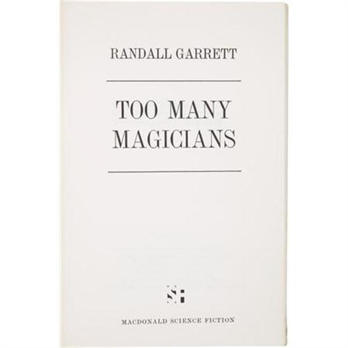 <B>Randall Garrett. </B></I><B><I>Too Many Magicians</B></I></B></I>. London: Macdonald & Co., [1968]. <BR>First UK edition. Twelvemo. 260 pages.<BR><BR>Publisher's black cloth with gilt spine titles. In original pictorial dust jacket. Very good condition. <I>From the Robert and Diane Yaspan Collection.</B></I><BR><BR><b>Shipping:</b> Books & Catalogs (<a target="_blank" href="http://www.heritageauctions.com/common/shipping.php">view shipping information</a>)