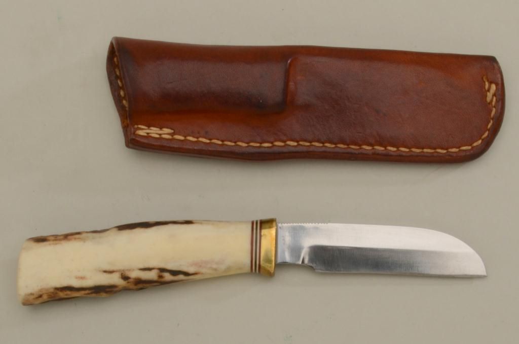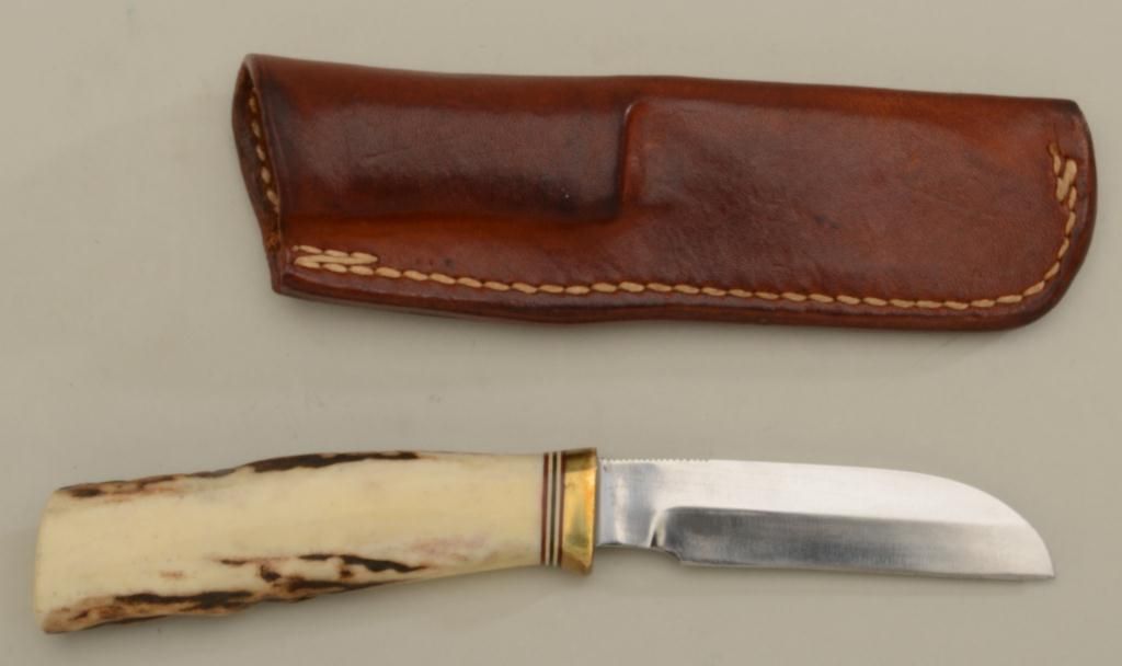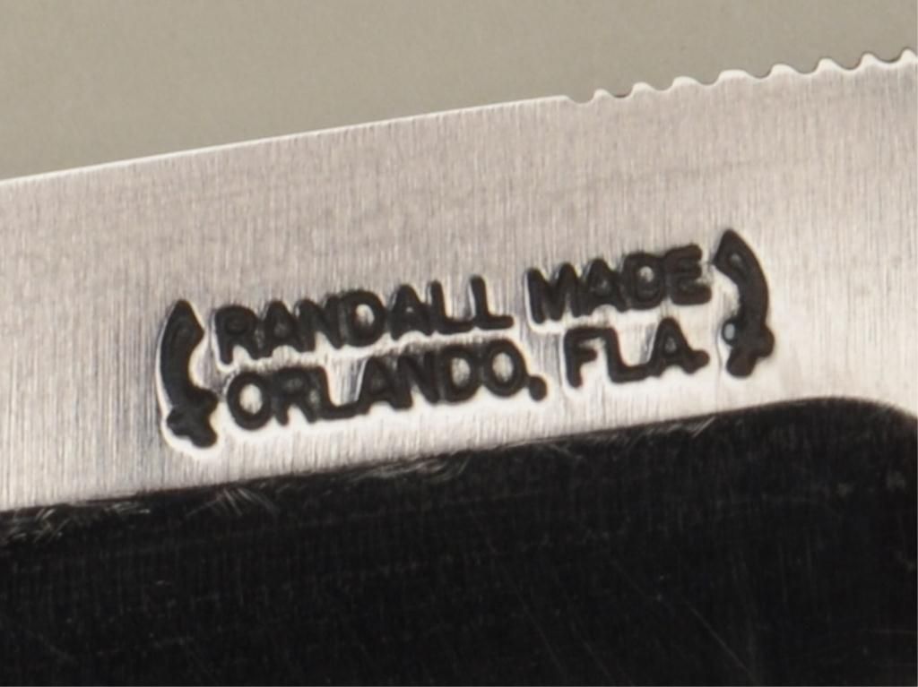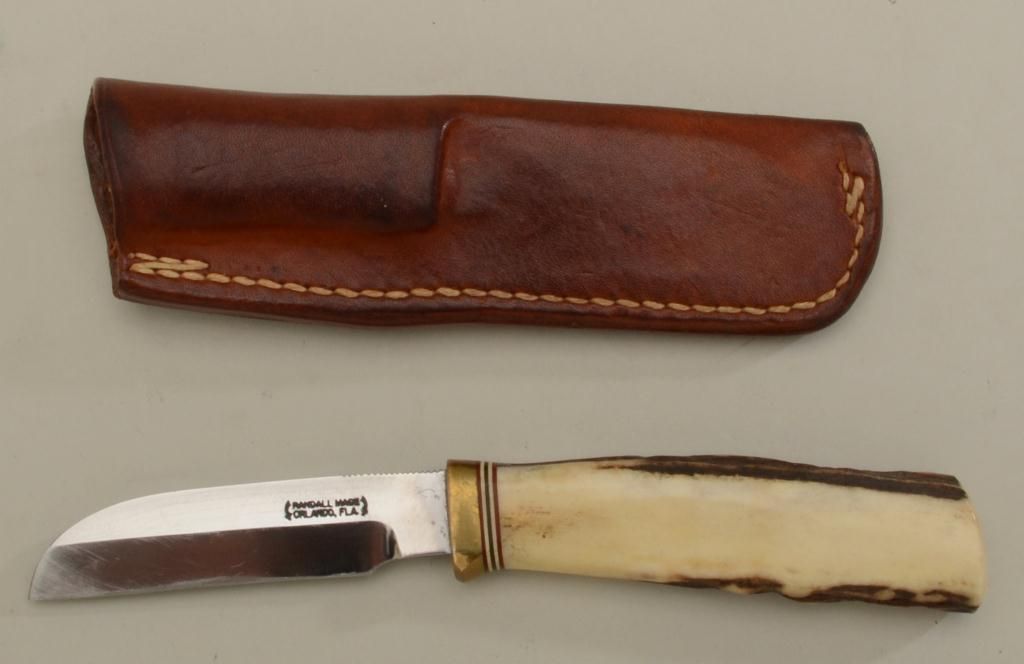 Randall knife and Randall made leather sheath (Orlando, FLA) in overall very good condition approx. 7-1/2” overall with an approx. 3-1/2” blade; beautiful stag grip. Est.: $350-$700.