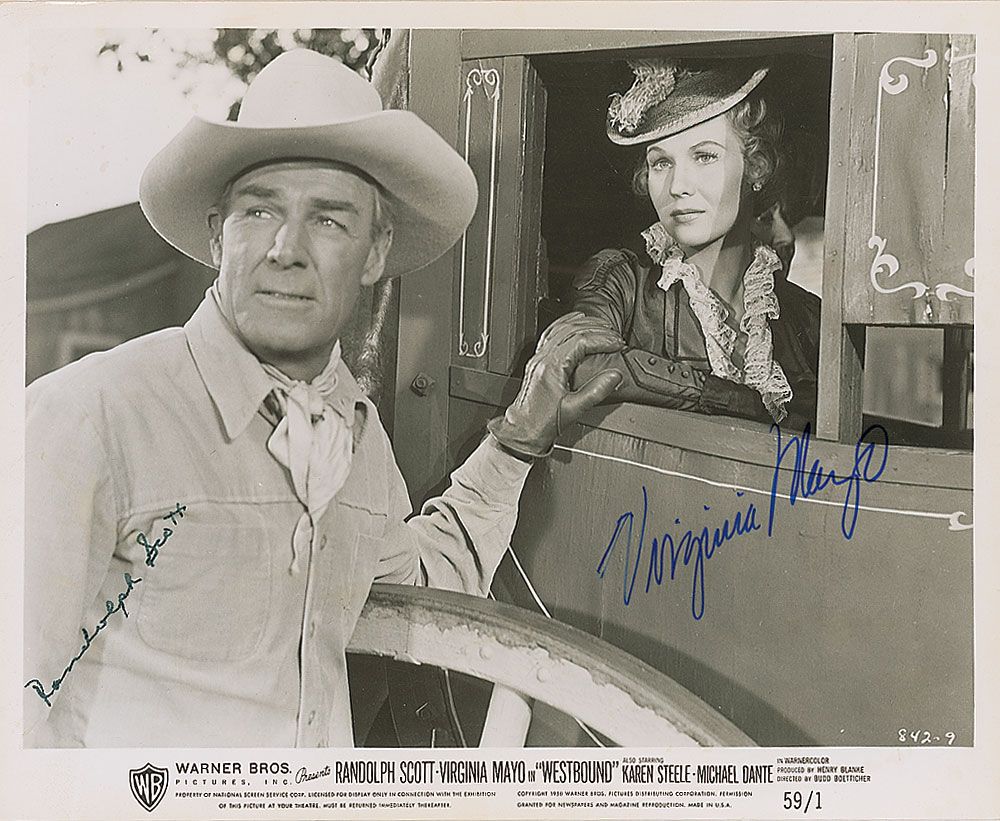 Glossy 10 x 8 Warner Bros. promotional photo for Westbound, signed in black felt tip by Scott and blue felt tip by Mayo. In fine condition.