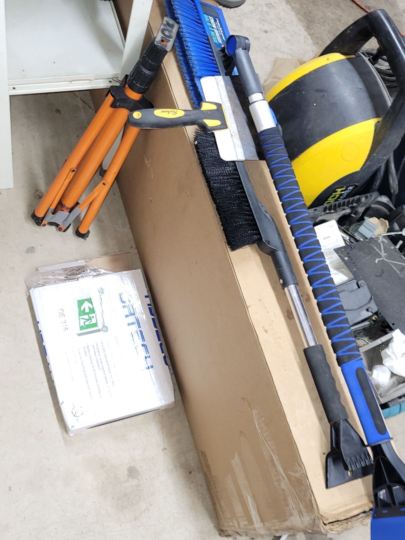 Random Lot of Goodies | Drywall Spreader | Large Snow Brush | New Exit Sign