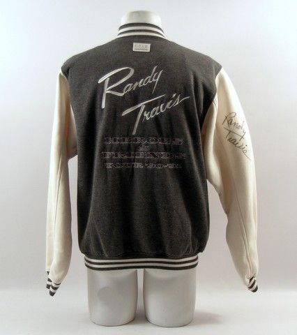 Randy Travis' Autographed Tour Jacket From Randy Travis' 1990-1991 Heroes & Friends Tour, an official signed two-tone gray and white baseball tour jacket. "Randy Travis - Heroes & Friends Tour '90-'91" is dramatically embroidered on the back. Randy Travis has signed the right sleeve. Was originally donated by Randy Travis to the Bryon Scott Foundation Fundraiser. Comes with a Letter of Provenience. (Size M).