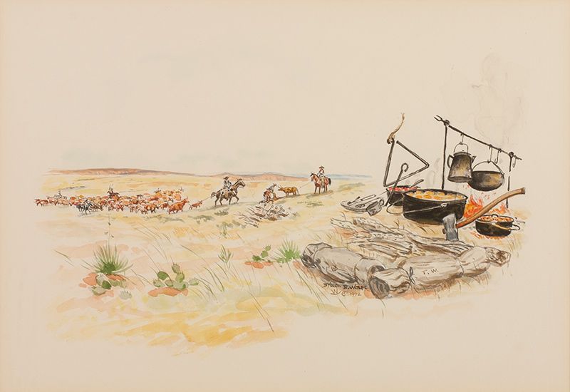 Byron Wolfe, 1904 - 1973 CAA | Signed: Byron B. Wolfe rocking W brand © 1972, l/r | Media: Watercolor on paper | Dimensions: 7.5 by 11 inches