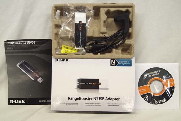 RangeBooster N USB Adapter with USB cord, Installation disk and still in its box. You can boost your WIFI connection for greater reception.