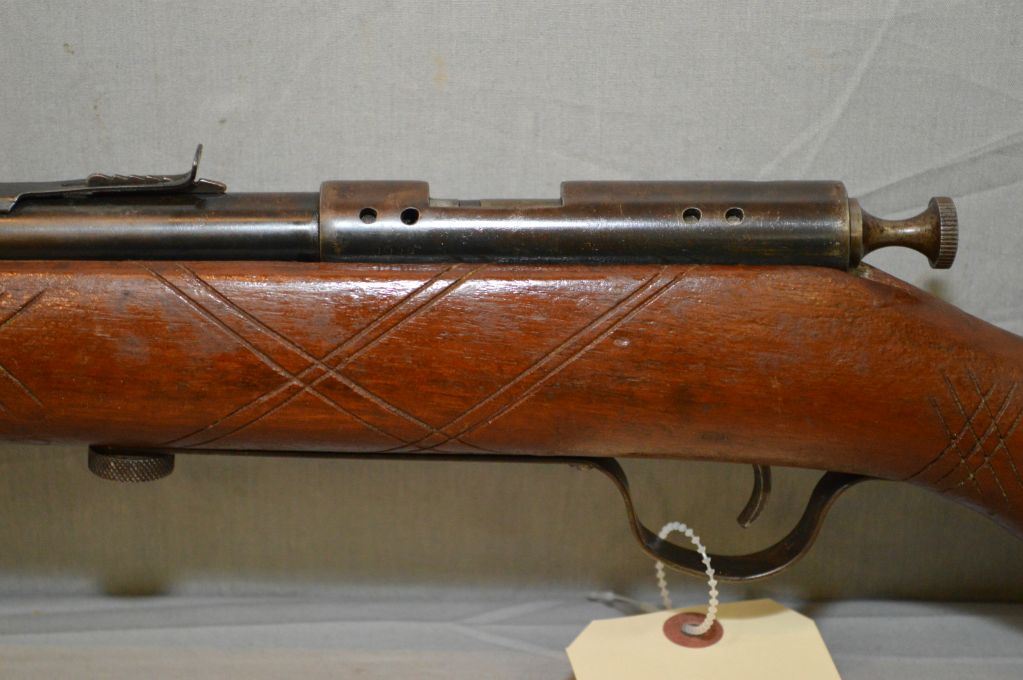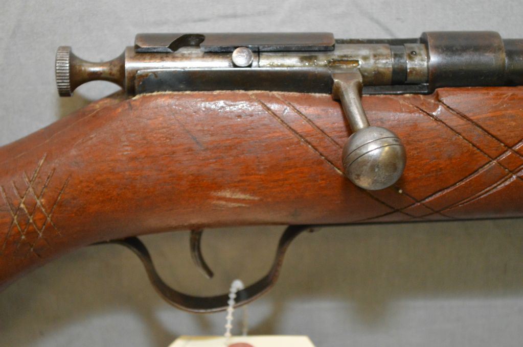 Ranger Model Repeater .22 LR cal Tube Fed Bolt Action Rifle w/ 24" bbl [ fading blue finish w/barrel sights, hand carved decoration on stock & pistol grip, w/ brown stain & worn varnish, ( 29 ) ] Ser # Nil
