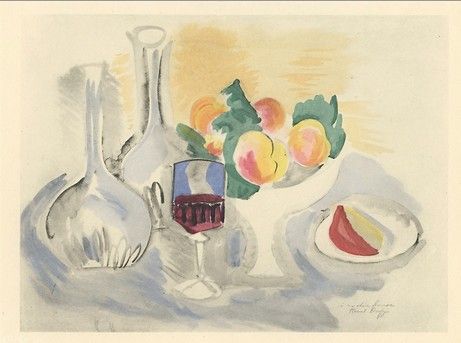 Raoul Dufy "Nature morte" Pochoir - Medium: Pochoir (after the watercolor). Published in Paris in 1925 by Albert Morance for "L'Art d'Aujourd'hui", and now very scarce. The publisher's provenance inscription is printed beneath the image. Size: 6 1/2 x 8 5/8 inches (165 x 220mm) - Professionally Framed & Matted - Comes With Certificate - -