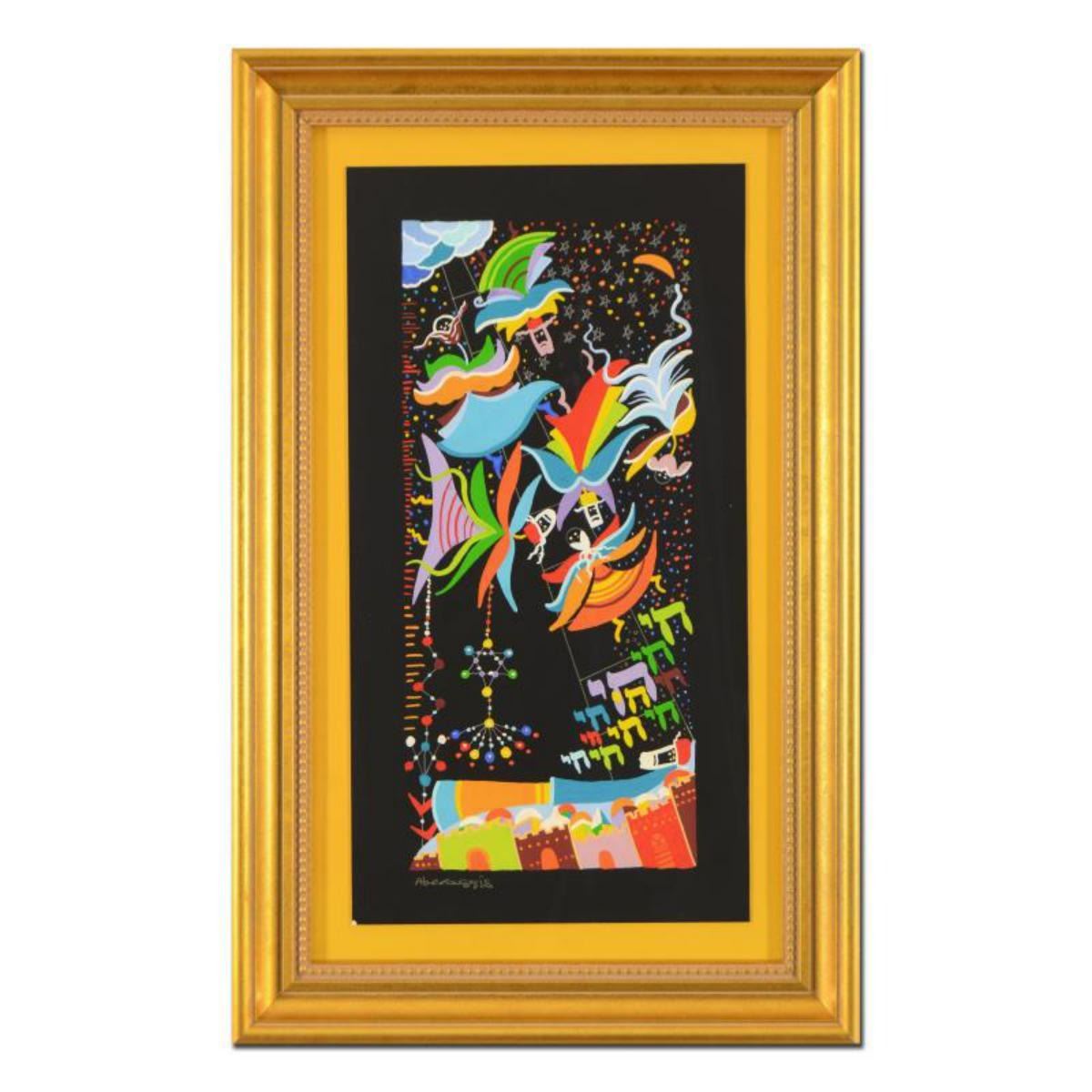 "Chai" is an original painting, gouache on board, by Raphael Abecassis. Hand signed by the artist, this piece comes framed and with a certificate of authenticity. Measures approx. 13" x 6" x 0". Reference #: 242134