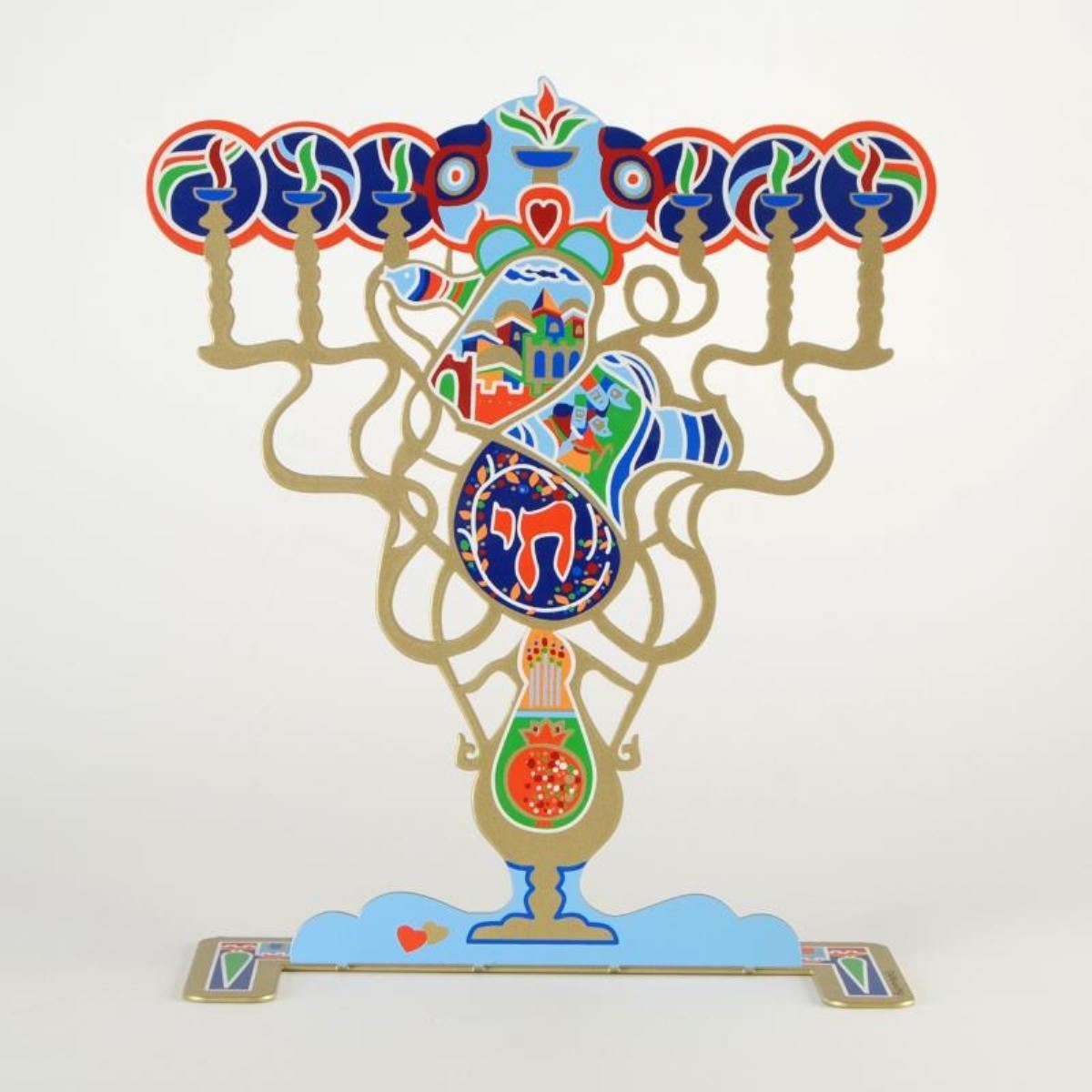 "Menorah" is a limited edition metal sculpture by Raphael Abecassis, numbered and hand signed by the artist. This piece features a different design on each side and is numbered in Hebrew on the sculpture's base. Includes Certificate of Authenticity. Measures approx. 12" (width) x 13.5" (height); 4" (depth of base).