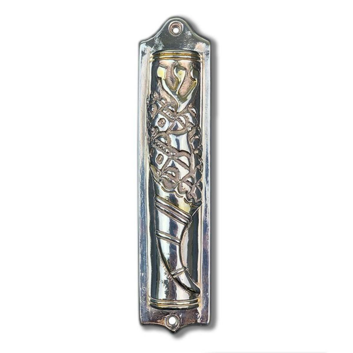 This is a sterling silver electroform mezuzah case by Raphael Abecassis. Accompanied by a certificate of authenticity, it measures approximately 1.4" x 6" x 0.6". Reference #: 241878.