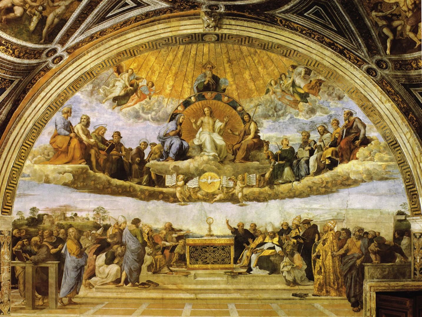 Artist: Raphael - Title: Eucharist - Medium: Fine Art Giclee on Canvas - Image Size: Approximately 30 inches x 40 inches - Framed: Unframed on Unstretched Canvas - A leading figure of Italian High Renaissance classicism, Raphael is best known for his "Madonnas," including the Sistine Madonna, and for his large figure compositions in the Palace of the Vatican in Rome.