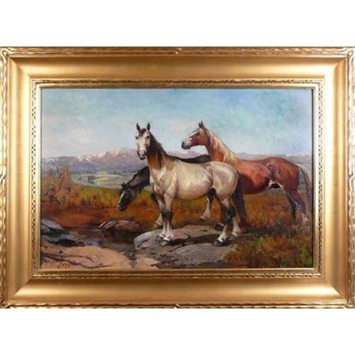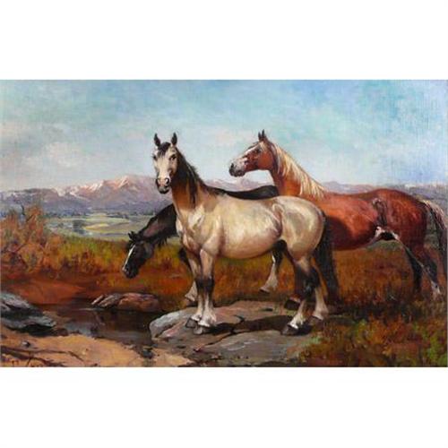 Raphael Lillywhite (1891-1958) Untitled (Horses) Oil on Canvas Signed lower left 19 3/4" x 29 7/8"