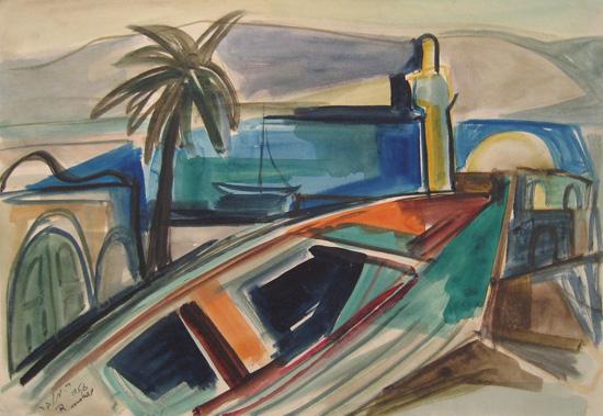 Raphael Mohar, Israeli Art, 1906 - 1962, Tiberias, 1956, Gouache and watercolor, 35x50cm, Signed and dated., , , , ,