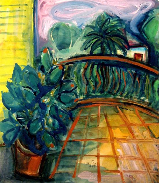 Raphael Mohar, Israeli Art, 1906 - 1962, Balcony, 1947, Gouache, 45x39cm, Signed and dated., , , , ,