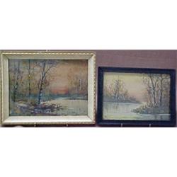 Raphael Senseman, two watercolor landscapes with trees and stream, signed (L.R. and L.L.), images measure 6" x 8" and 5" x 7", listed, both framed