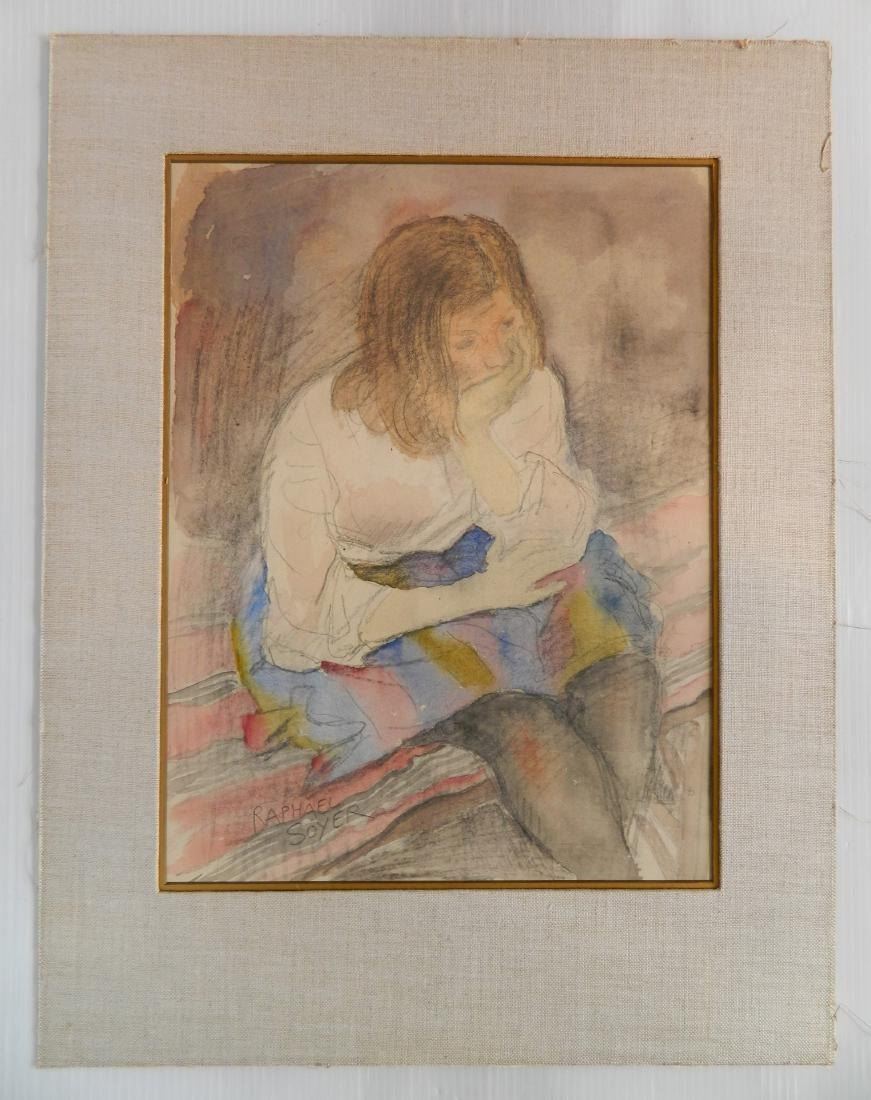 Raphael Soyer (American 1899-1987)- ''Problem''- watercolour and graphite on paper, signed Raphael Soyer loewr left. 16 1/2 x 12 1/2''