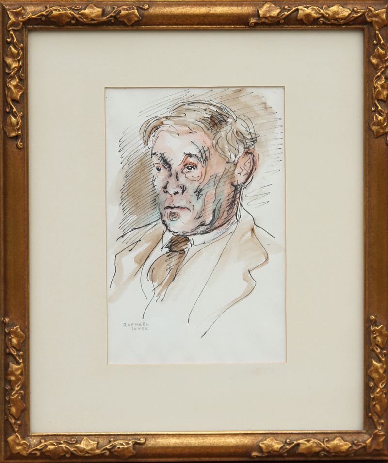 Raphael Soyer, Portrait of a Man, Ink and Watercolor Painting