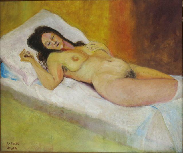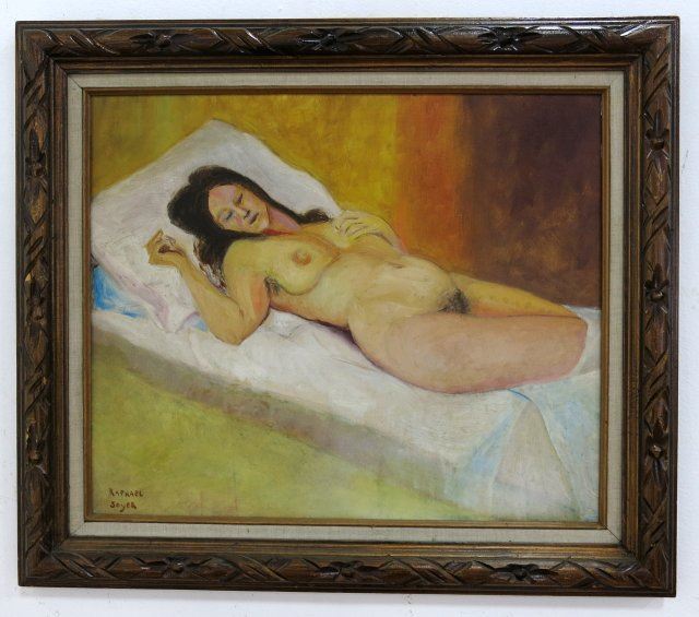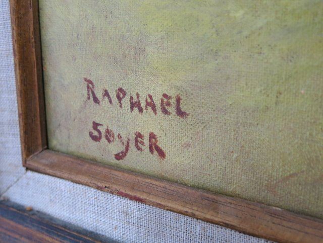 Oil on board. Framed. Signed lower left. Raphael Soyer, American (1899-1987). Approx. 24" H x 20" W unframed, 30" H x 26" W framed. No guarantee of authenticity or provenance. Property of the Tyndale Collection, Boonton NJ.