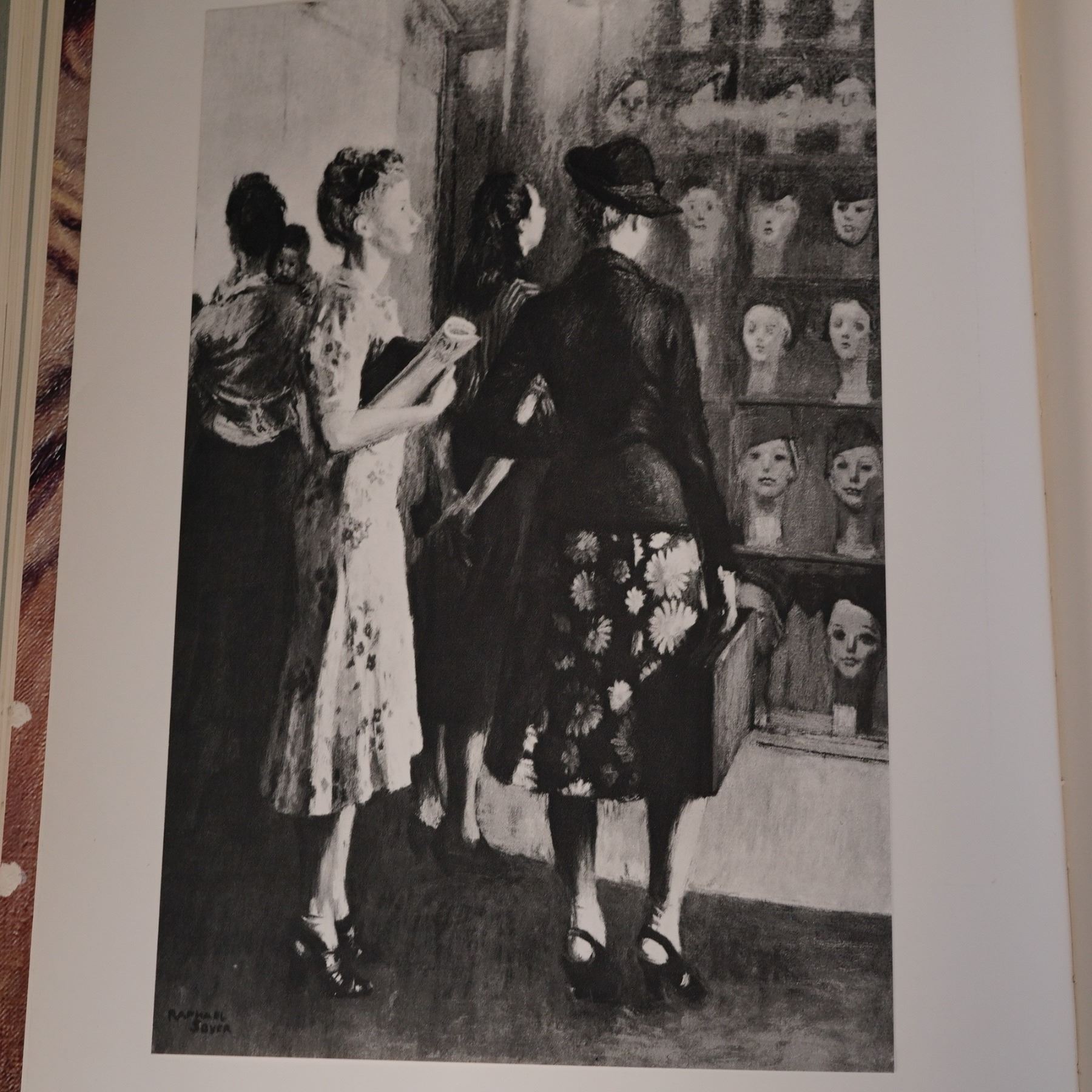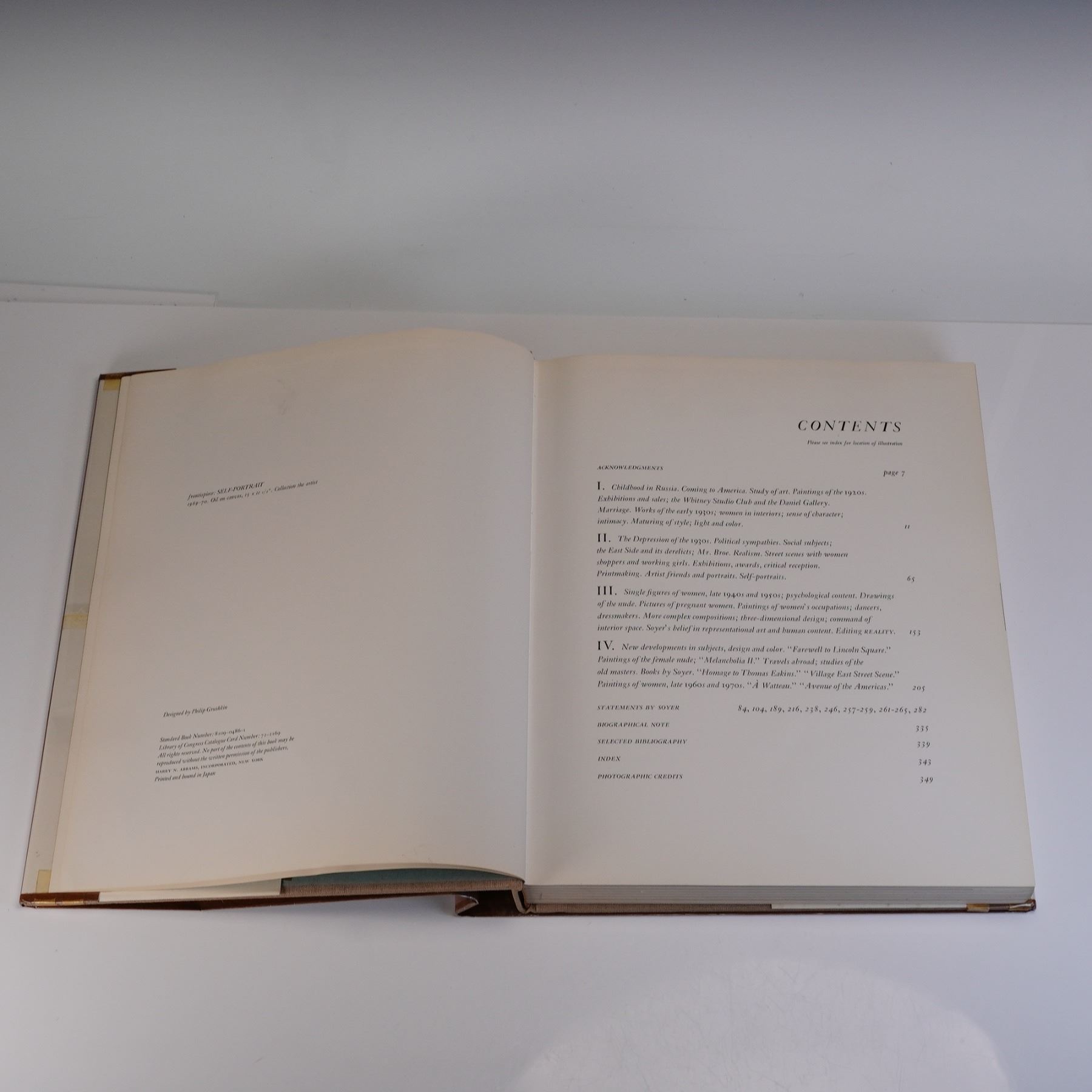 This is a first edition of Raphael Soyer by Lloyd Goodrich, published by Harry N. Abrams, Inc. with the ISBN 8109-0486-1. The book includes 290 illustrations, 77 of which are in full color, providing an extensive visual record of Raphael Soyer's paintings and drawings. With 349 pages, the work offers a thorough exploration of Soyer's career, focusing on his depictions of urban life, portraits, and figure studies. It delves into the themes of social realism that pervade his work, providing both biographical details and insights into his artistic process. The book includes high-quality reproductions of his major works and serves as an essential reference for collectors and art scholars interested in modern American realism.