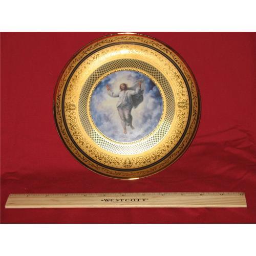 This Transfiguration plate produced by the Franklin Mint is in mint condition. Raphael's Transfiguration is a Christian reality and collector's of Franklin Mint items as well as early Christianity find this plate highly collectable. The ID number on the plate is G5237. The plate is presented by the Vatican Museum.