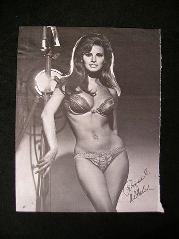 This is a signed B&W photo from 1960's vixen Raquel Welch. Born Jo Raquel Tejada, Ms. Welch became an overnight sensation after her role as a prehistoric cavegirl in the 1966 Sci-fi adventure 'One Million Years B.C.' Her cavegirl pin-up became the best selling poster ever at that time and solidified her as a bonafide sex symbol. This photo features her posed in an extremely form-fitting bikini and is signed in black ink on the lower right corner. (measures approx. 8 1/2"x 11")
