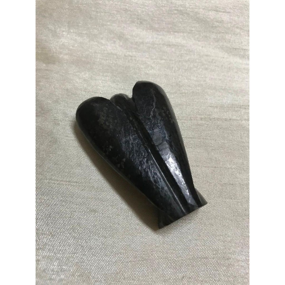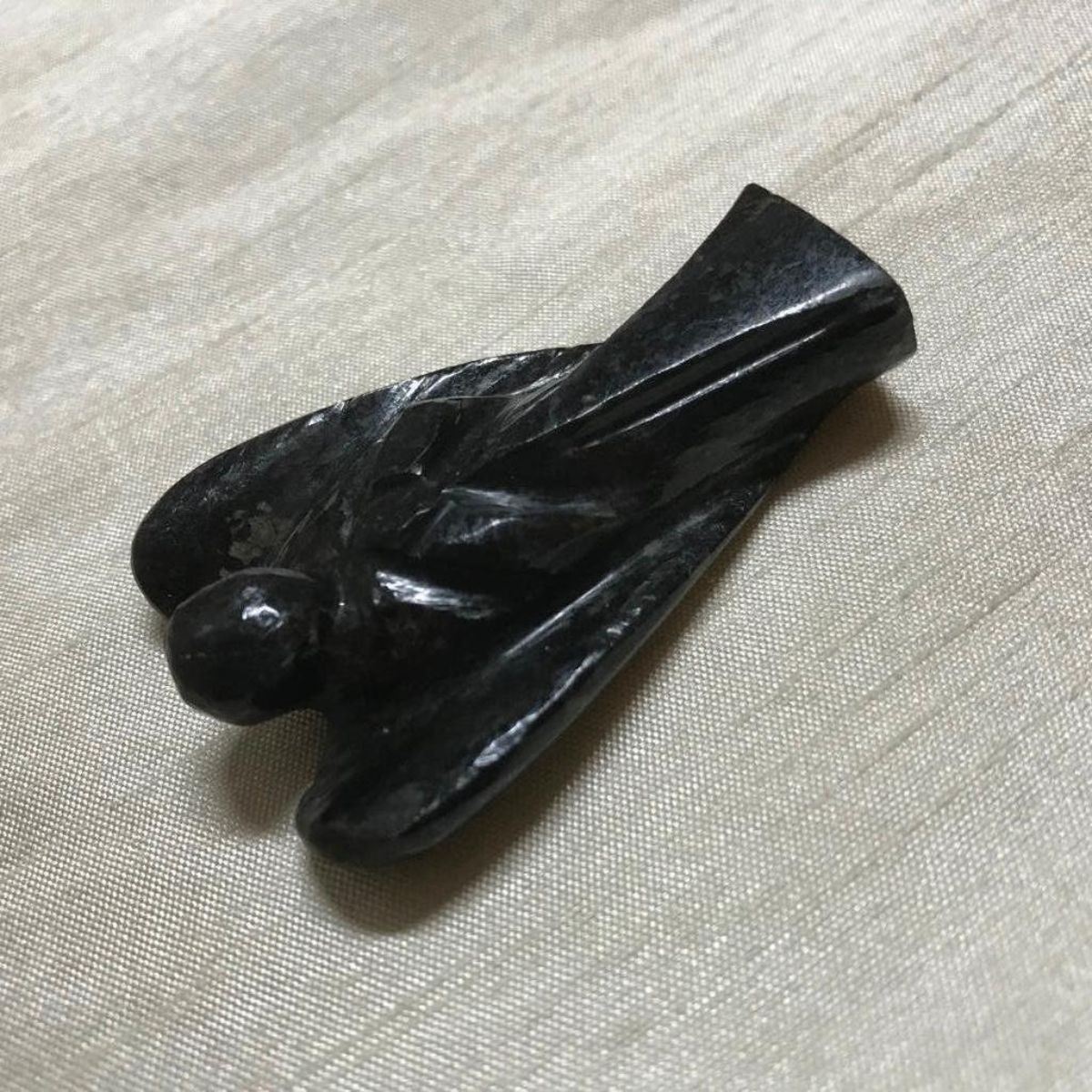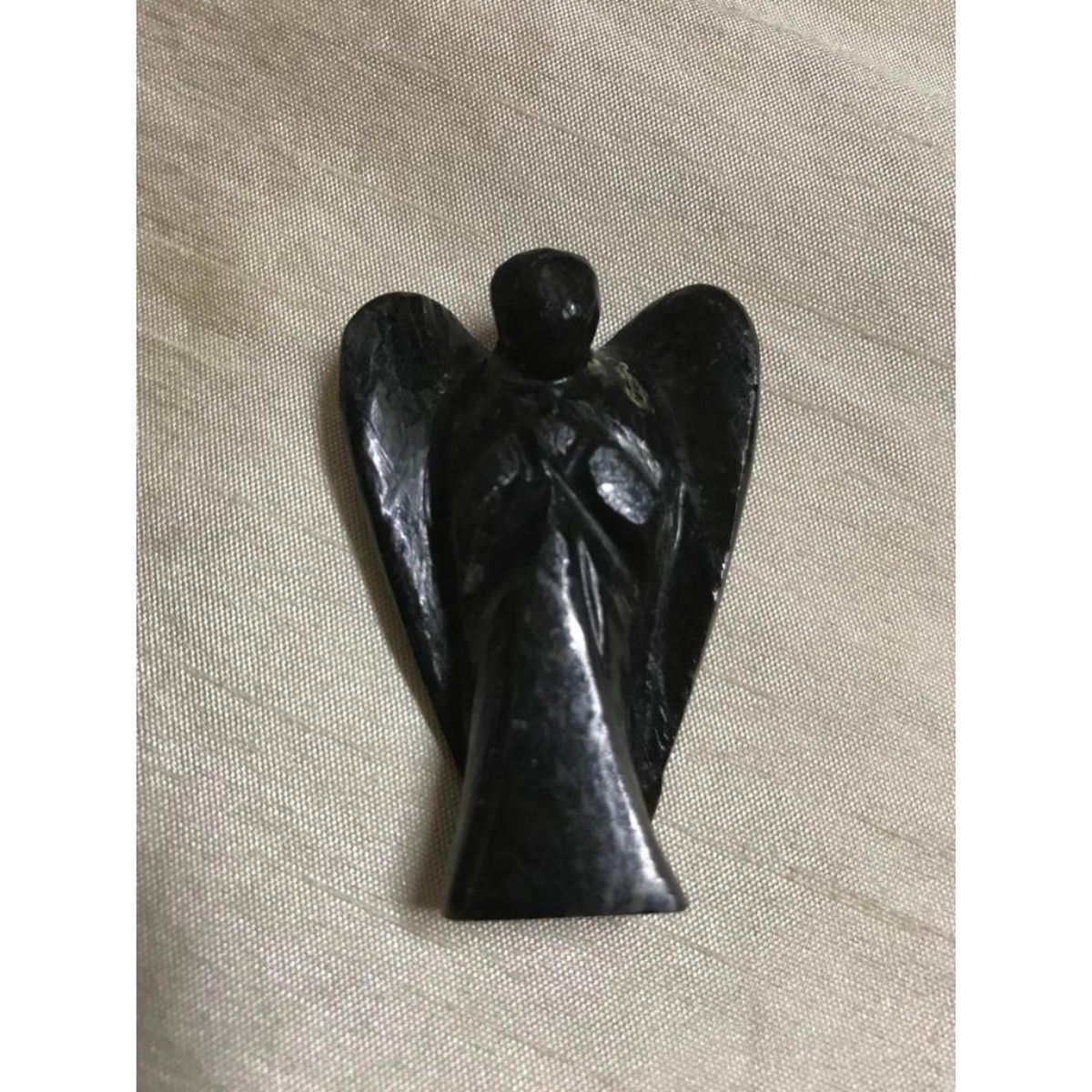 Rare hand-carved NuummiteReikistone angel. 2 1/8" H X 1 1/2" W. Gold pattern flashes when moved from side to side.