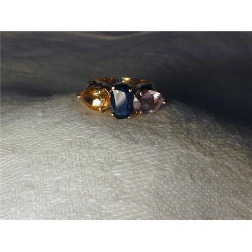 <tr><td>Title:Rare 14K Amethyst Citrine Sapphire 3-Stone Ring</td></tr>