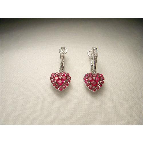 <tr><td>Title:Rare 14K WG Ruby Diamond Heart Drop Earrings</td></tr>