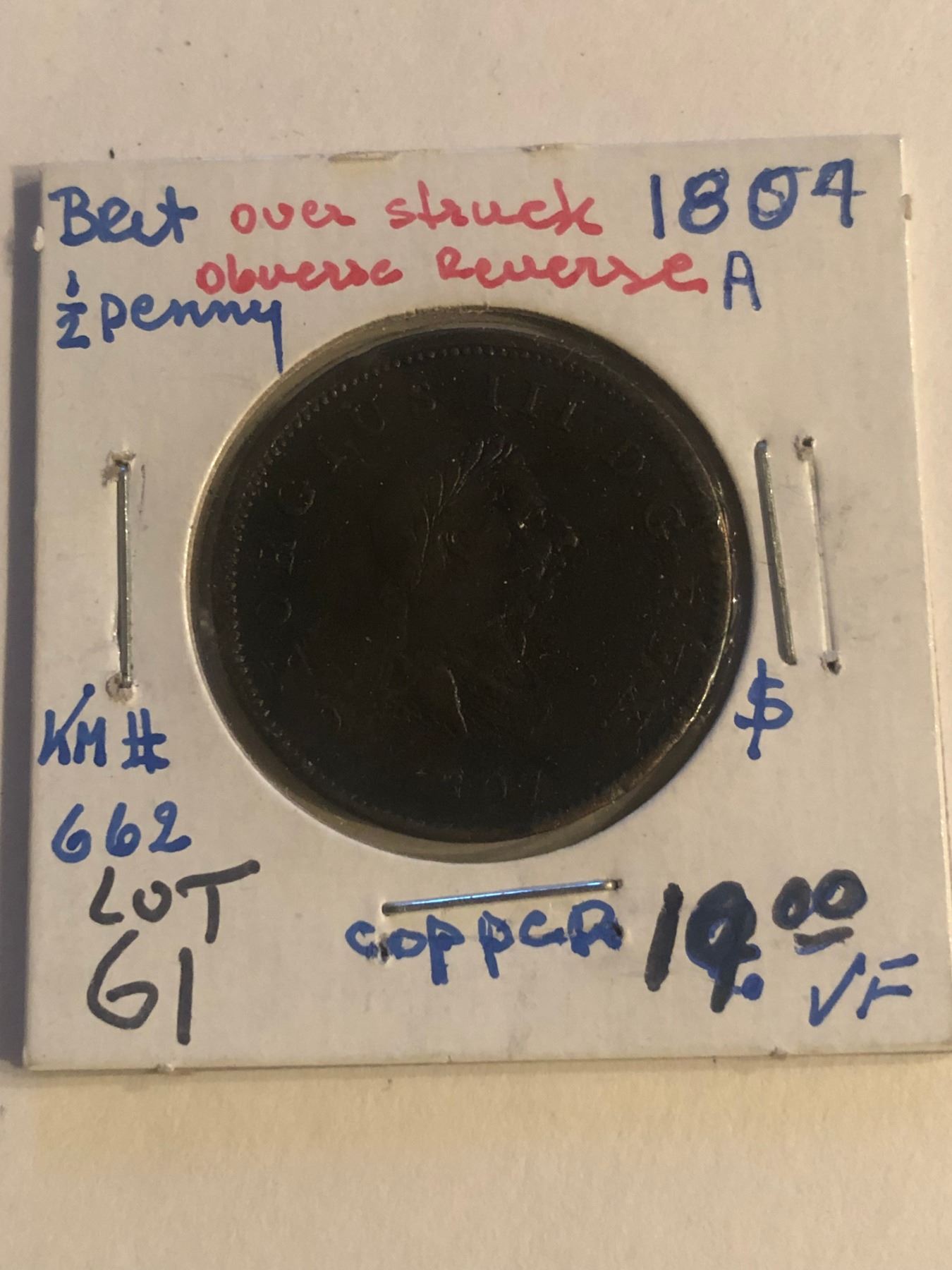 Rare 1807A Great Britain 1/2 Penny OVERSTRUCK Obverse/Reverse in Very Fine Grade