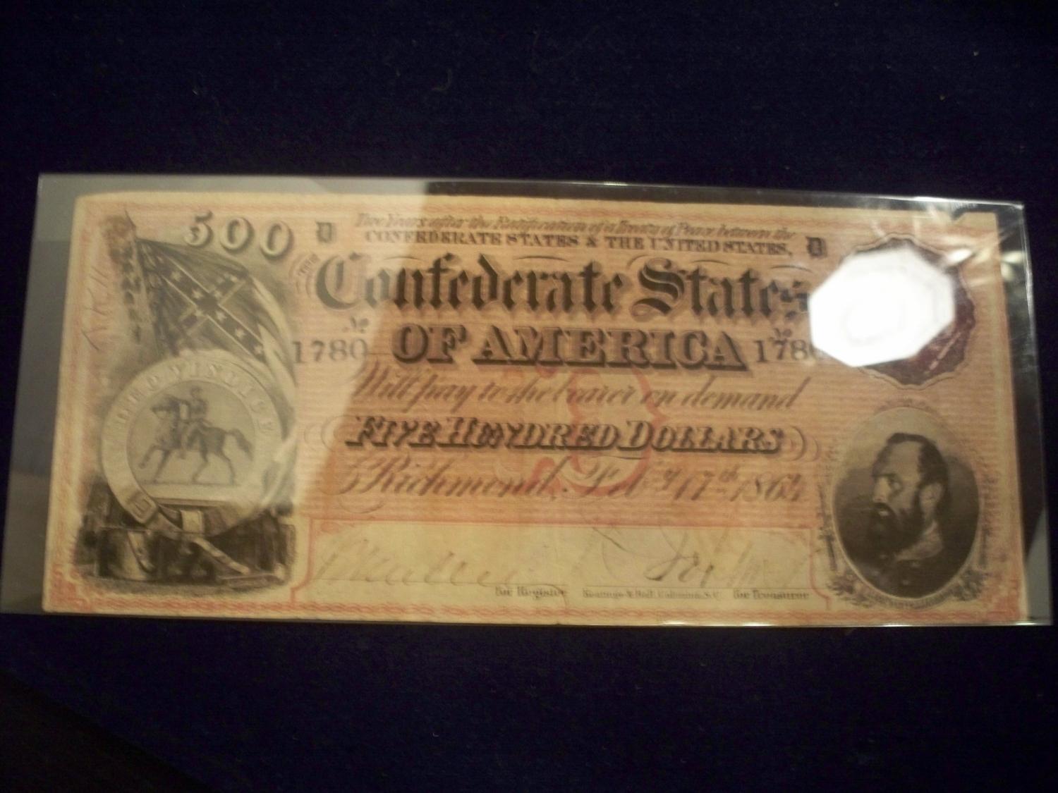 Rare 1864 Confederate $500 Note