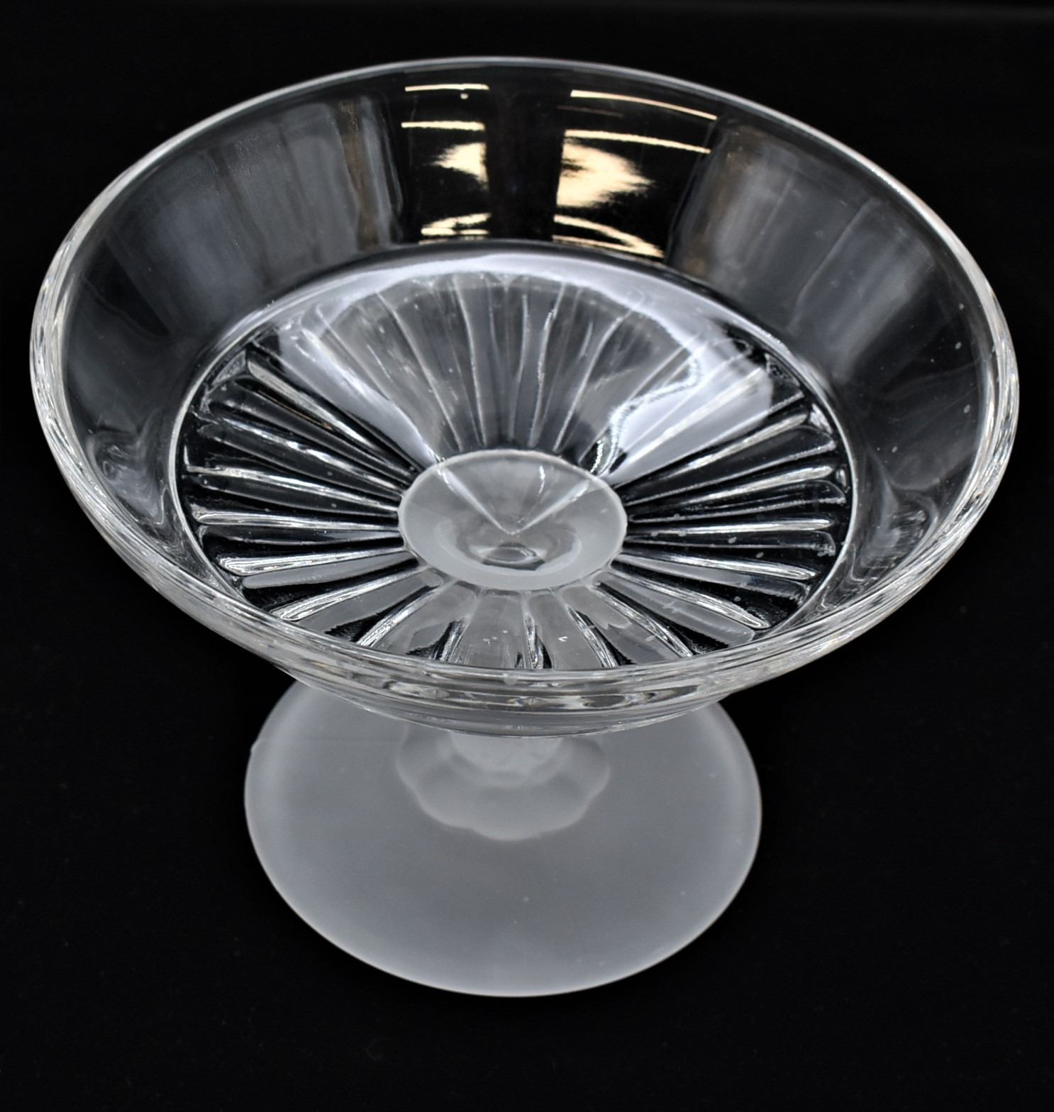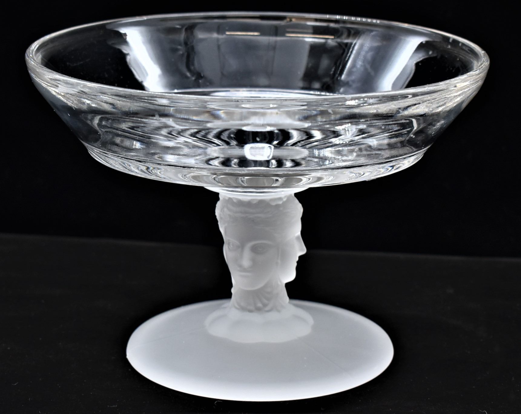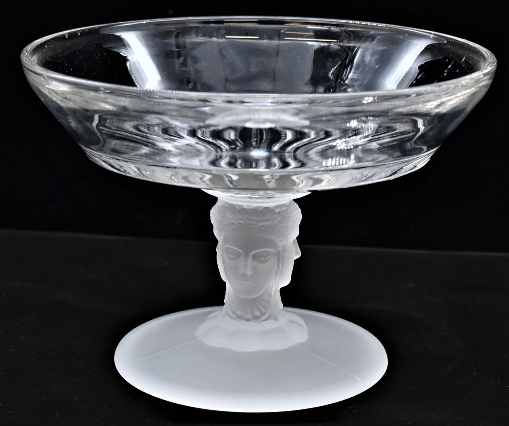 Rare 1872 Duncan & Sons Glass Open Compote Dish, measures 4''H x 6''D, features 3 Victorian Women's faces on frosted pedestal, no lid