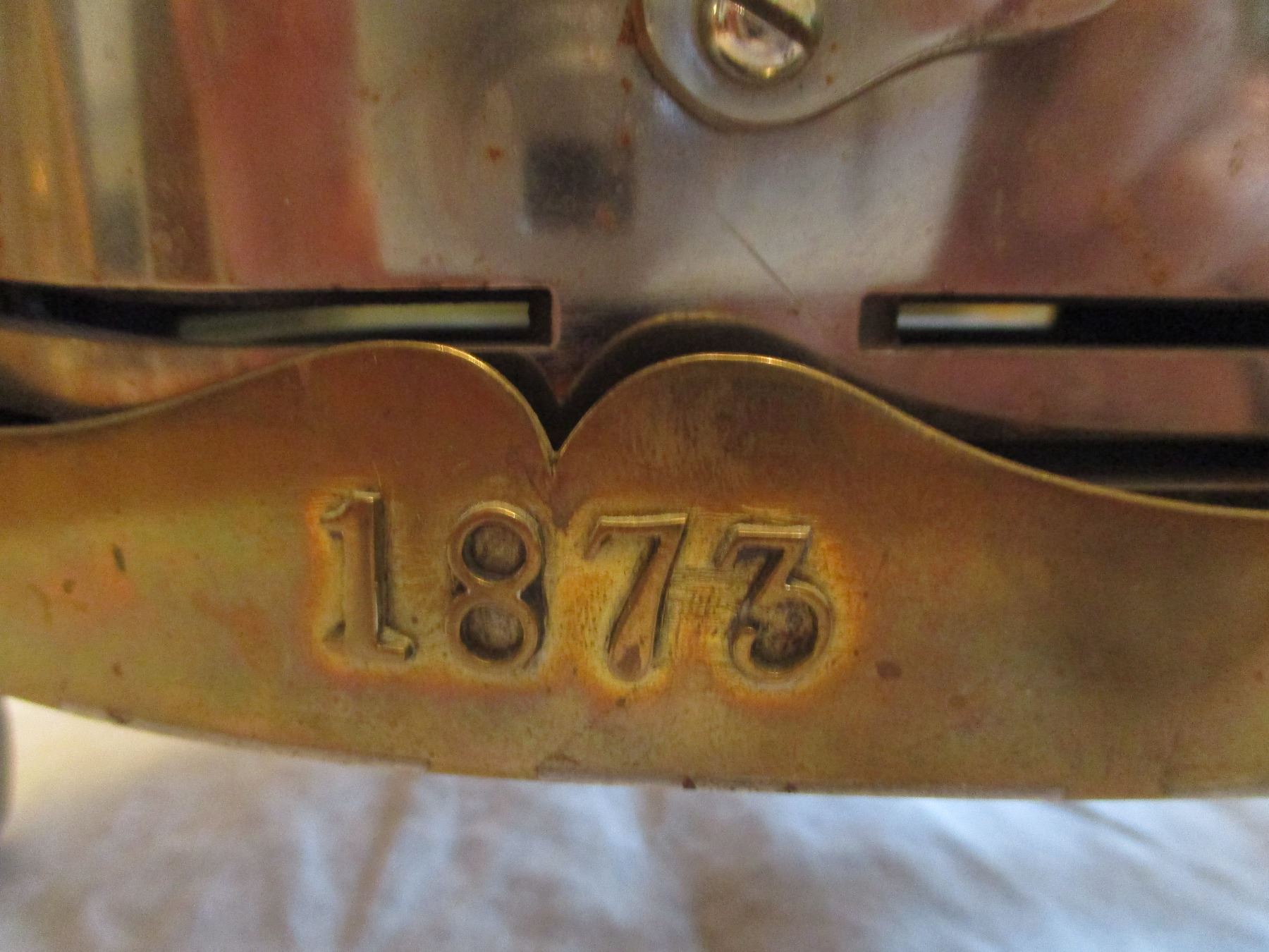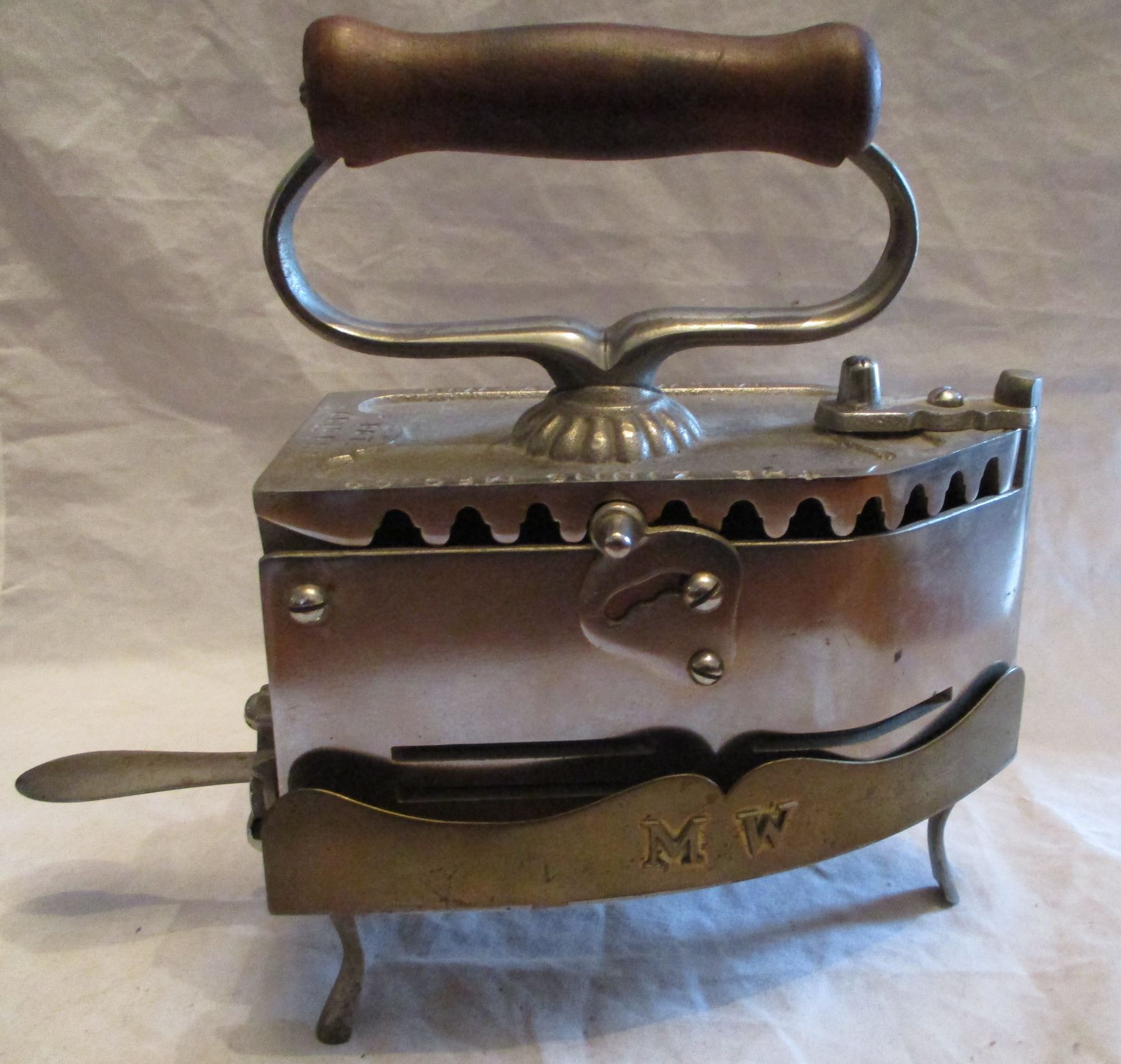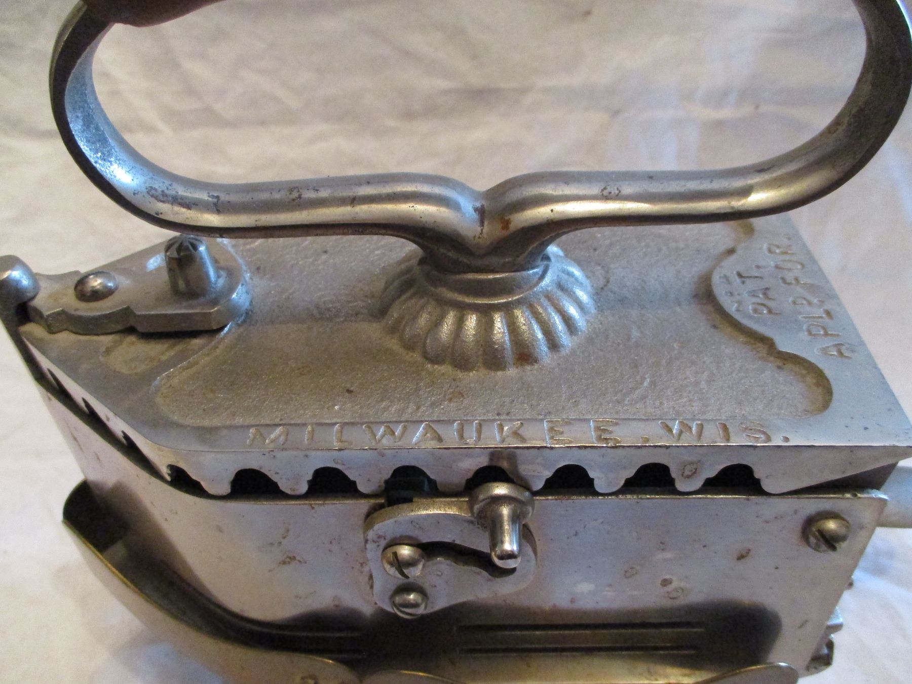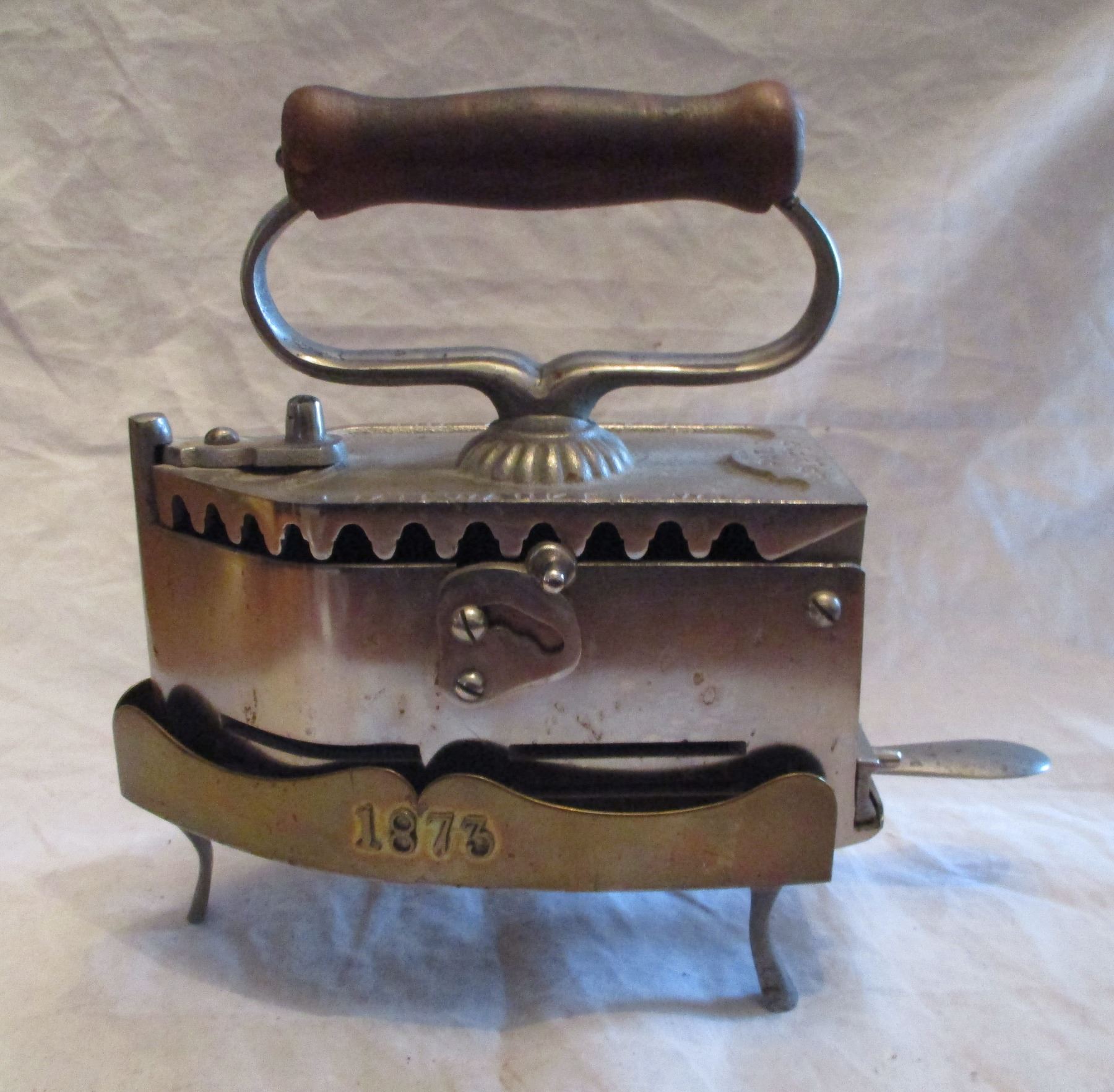 Rare dated 1873 Iron with Stand. Everything appears to work great. Iron reads The Zinns MFG Co. Milwaukee Wis No 4 Pat Apld For.