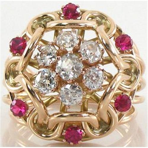 <tr><td>Title:Rare 18K Rose Gold 1ct Diamond Ruby Retro Ring</td></tr>