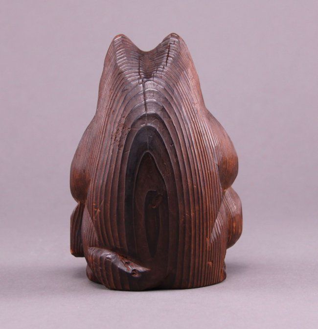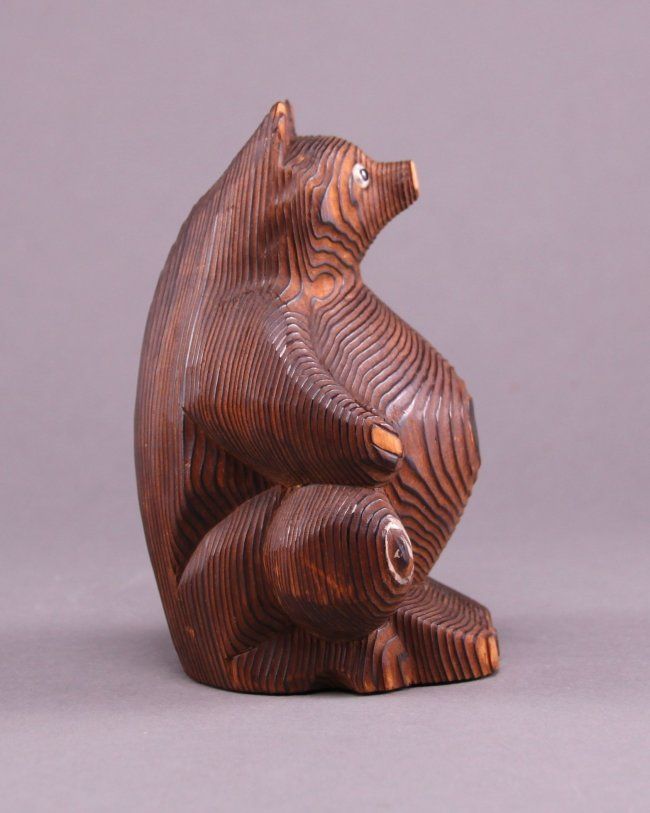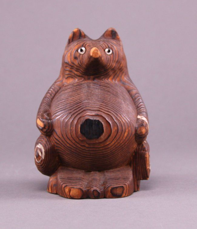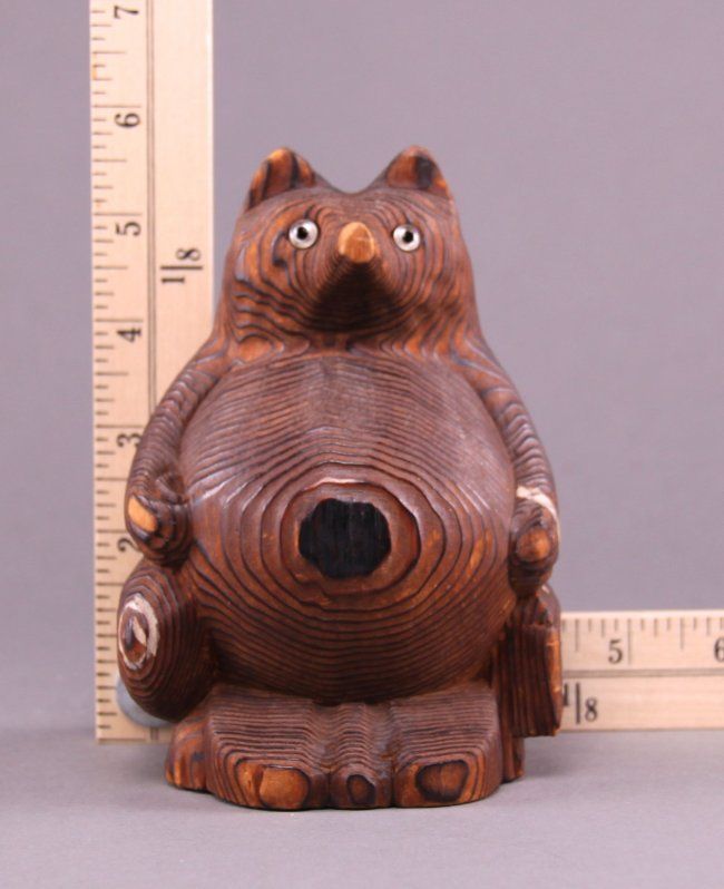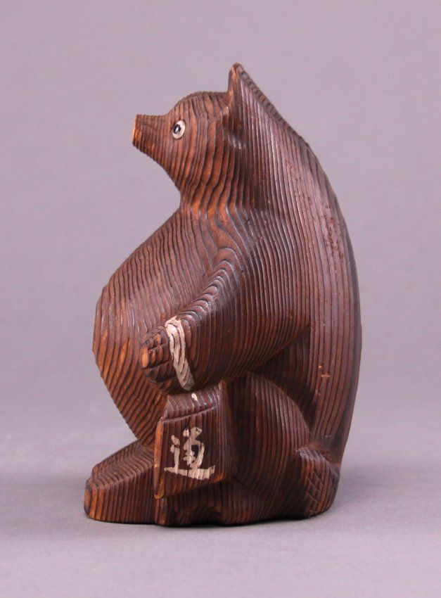 Rare 1900's Japanese wood carved bear. (Size: See last photo for measurement.) Photos are part of the description representing the condition report. Pangaea Auctions urges Bidder's to view all attached photos.