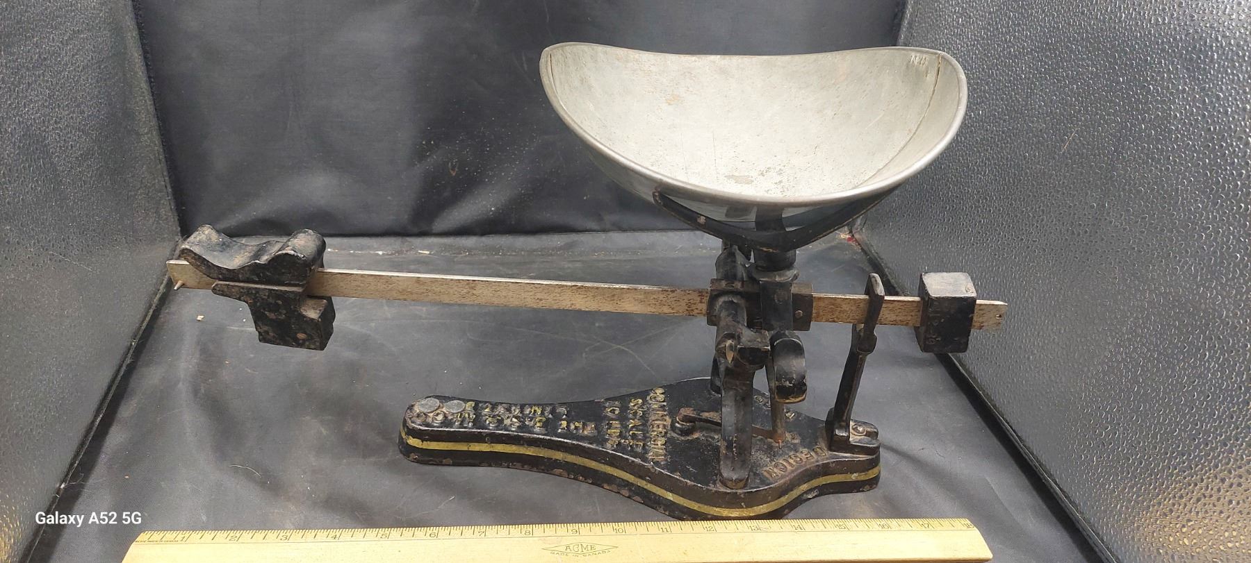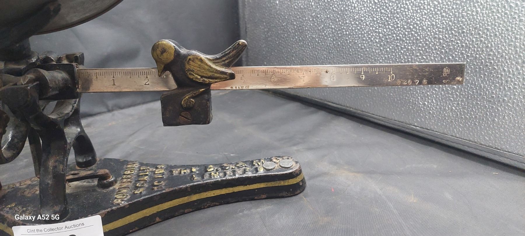 Rare 1901 The Bsmco 10lb cast iron scale w/bird slide (approx 19x9in)