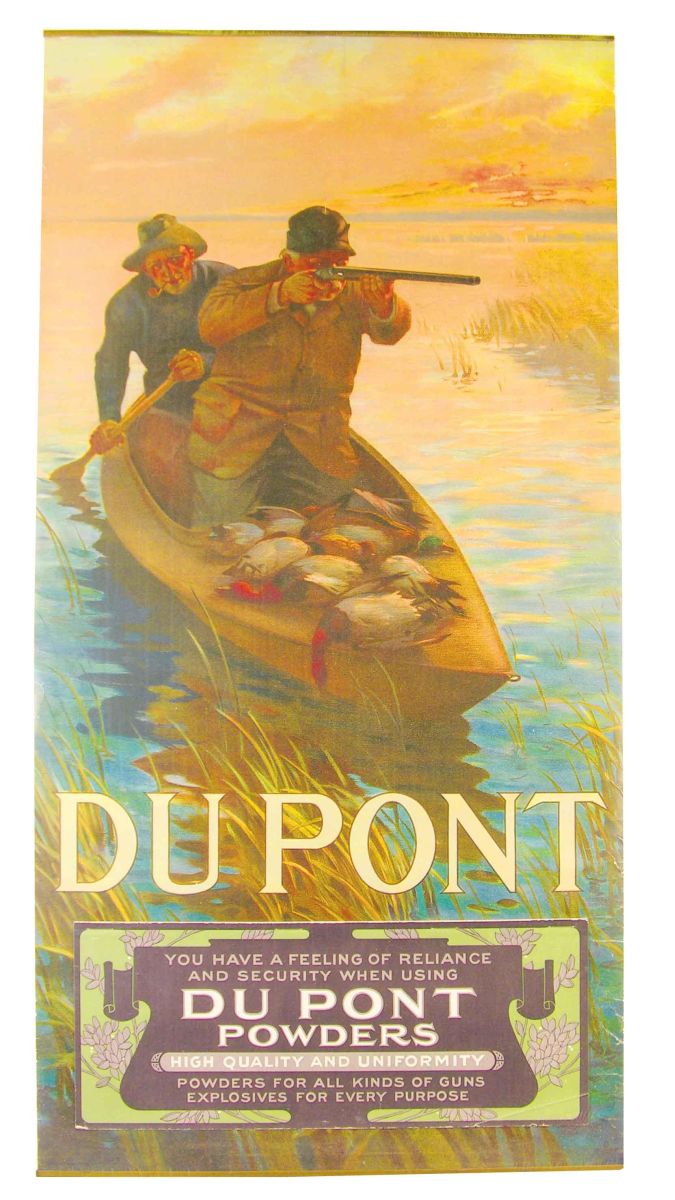 Rare 1906 Calendar for Dupont Powders. Full pad with dust cover and metal bands, top and bottom. A few minor creases around the right edge otherwise excellent condition. 15 X 29 1/2 inches.